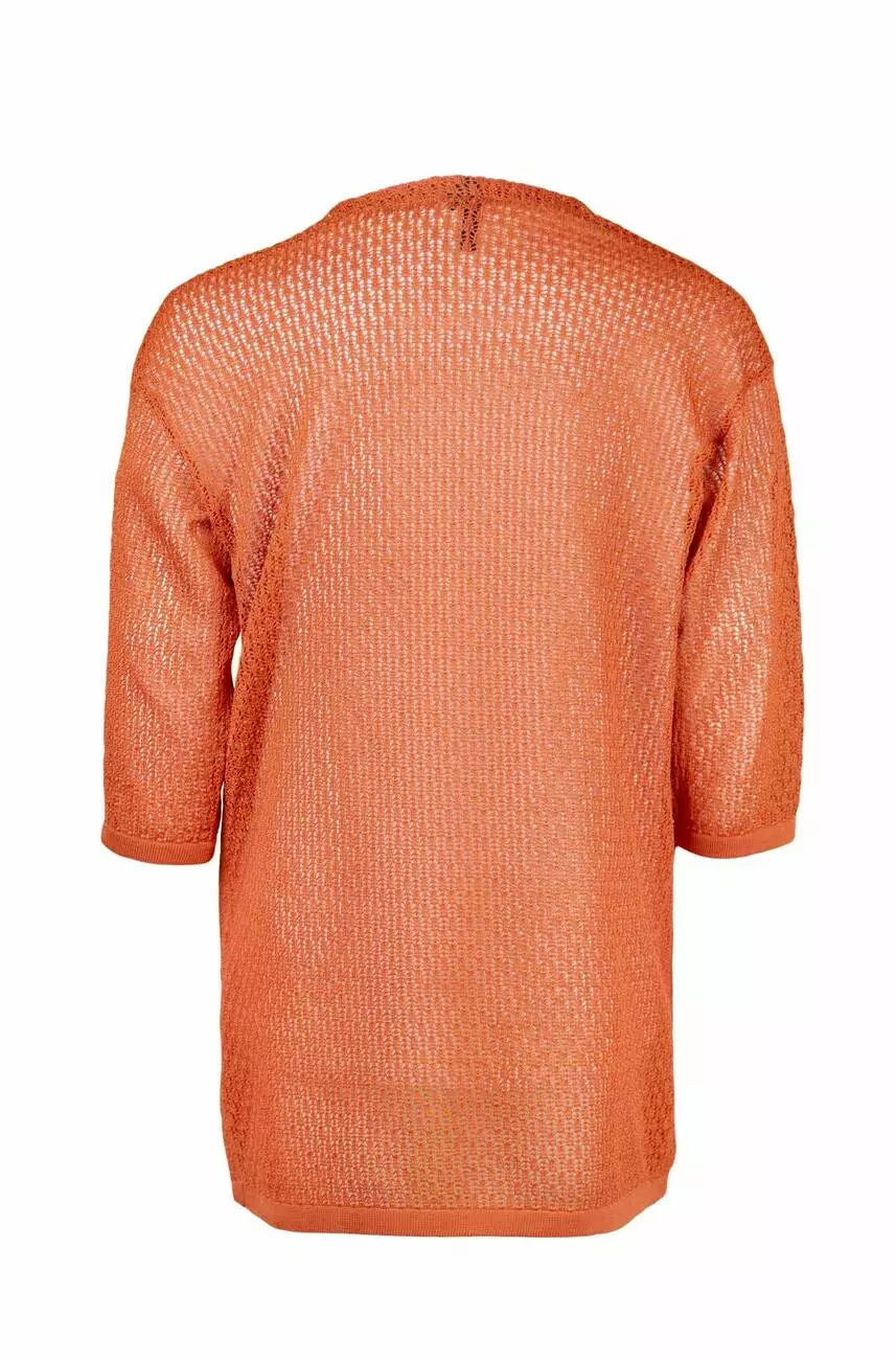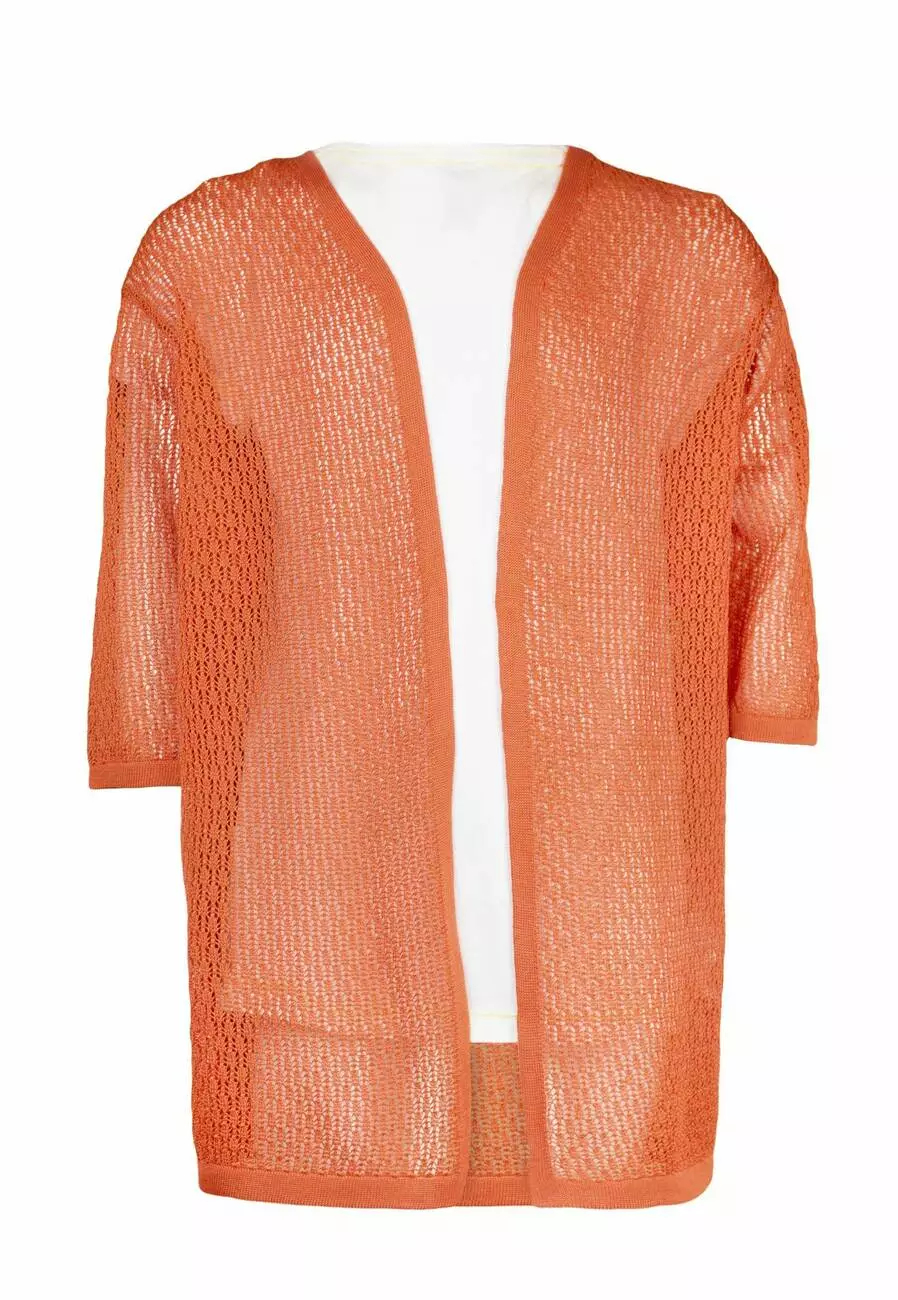 Деталі: Кардиган теракотового кольору. Вкорочені рукави. Прямий вільний крій. Ніжна ажурна текстура.