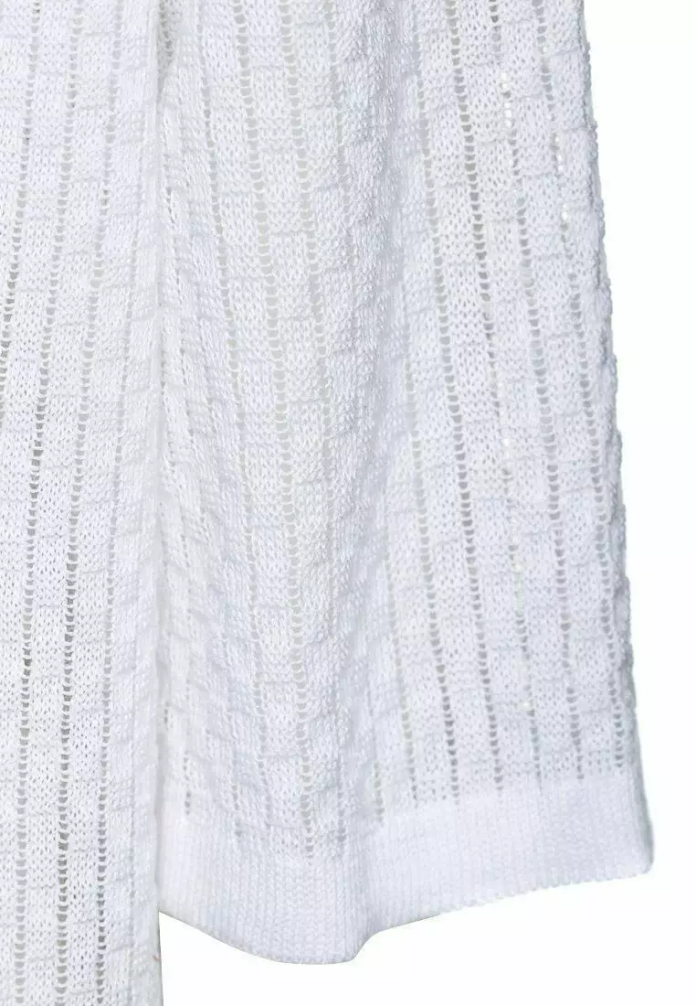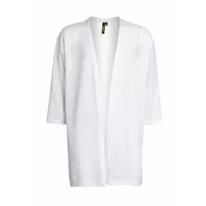 Деталі: Кофта білого кольору. Оригінальна текстура. Вкорочені рукави. Прямий крій.