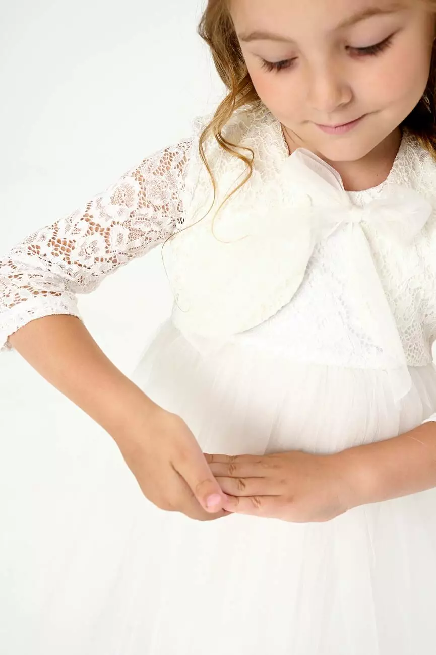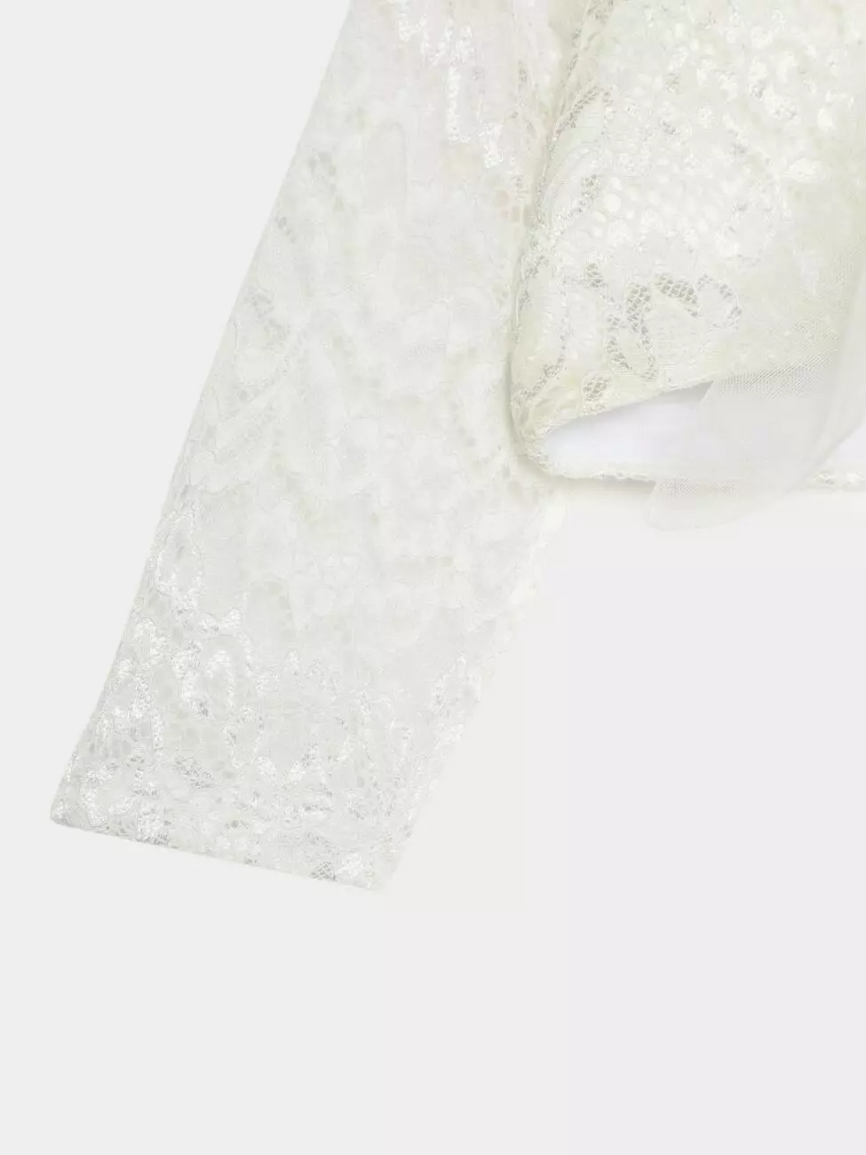 Болеро для дівчинки з мереживними рукавами біле YJ.21.30.014