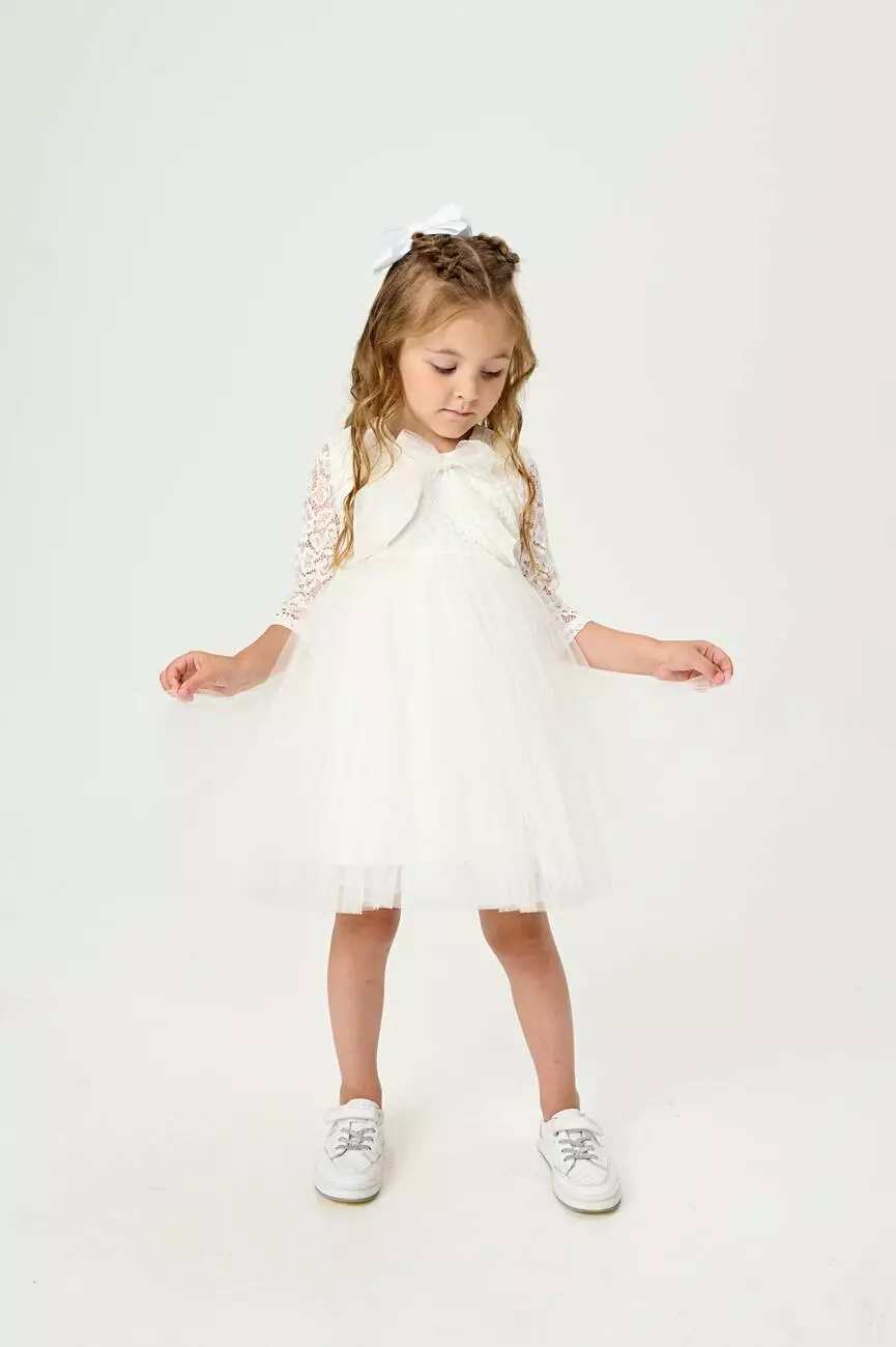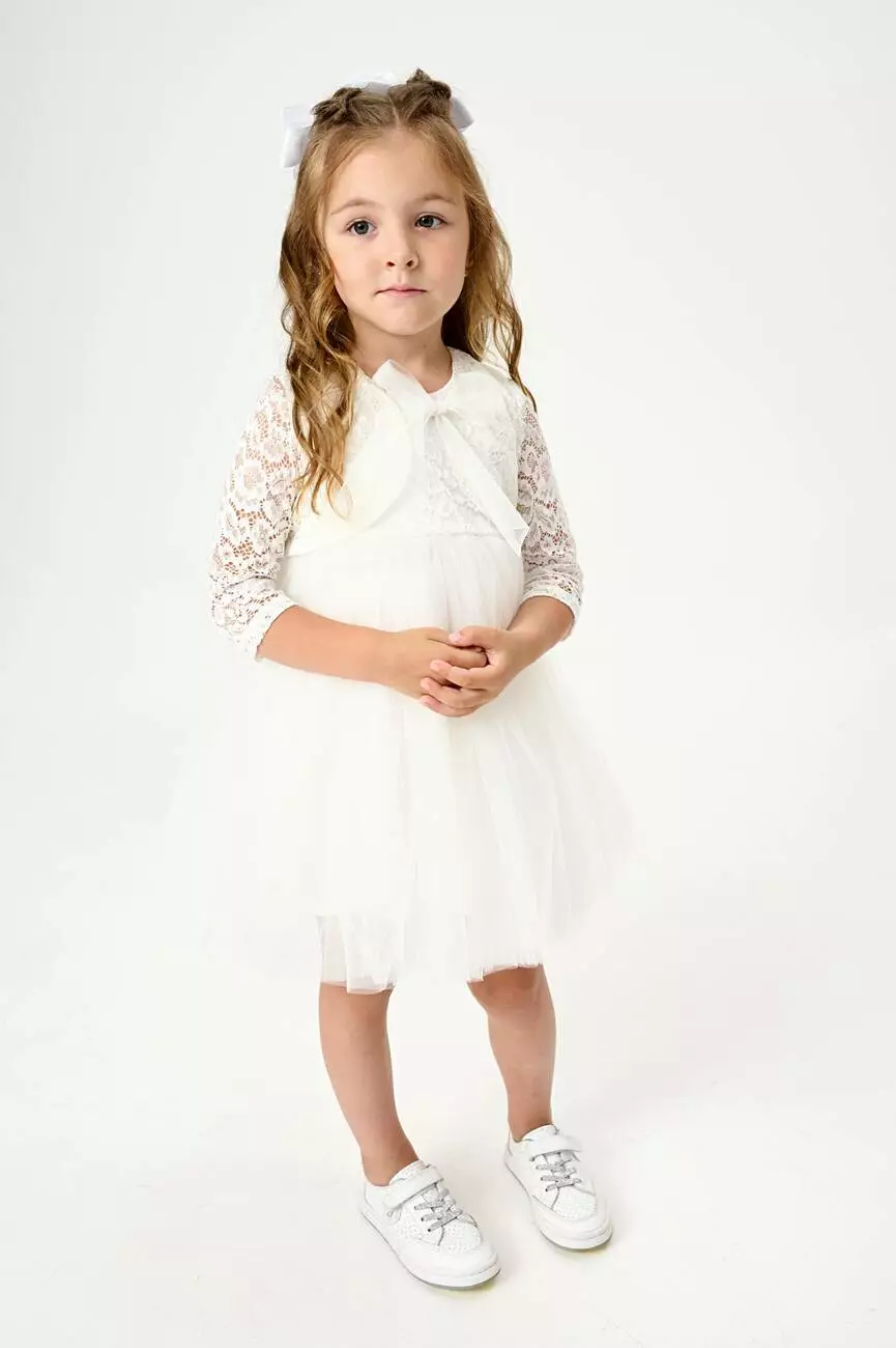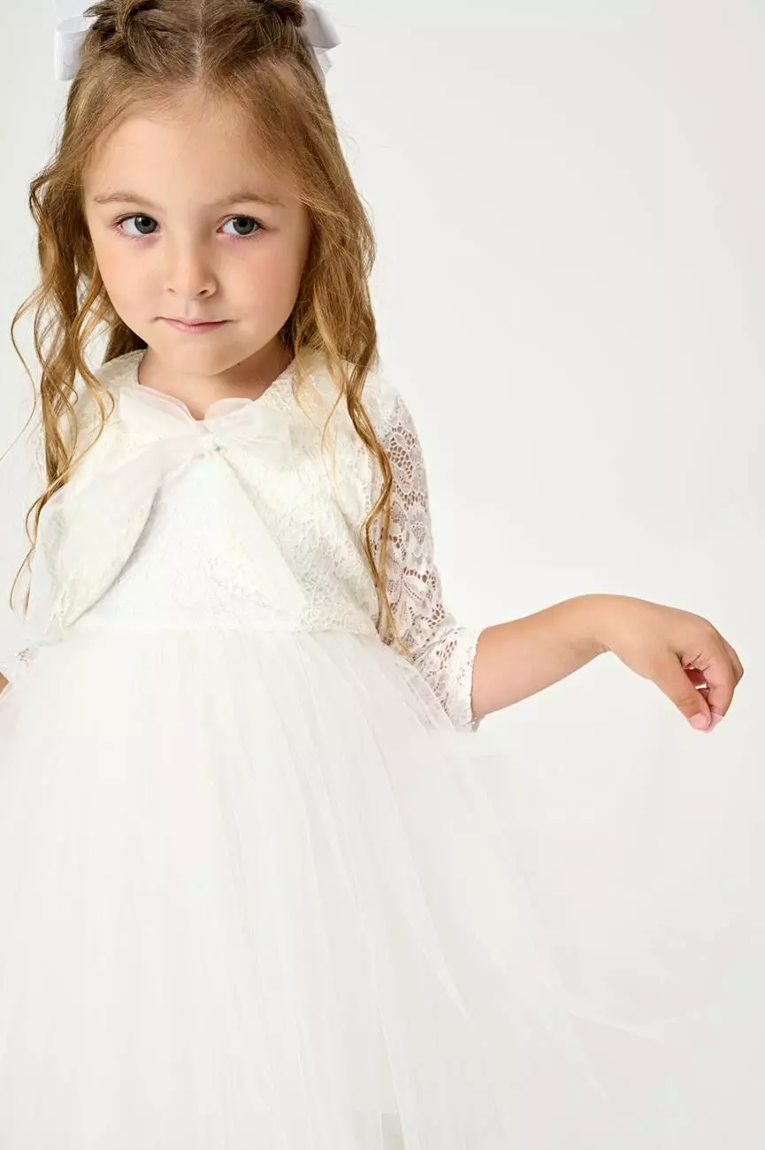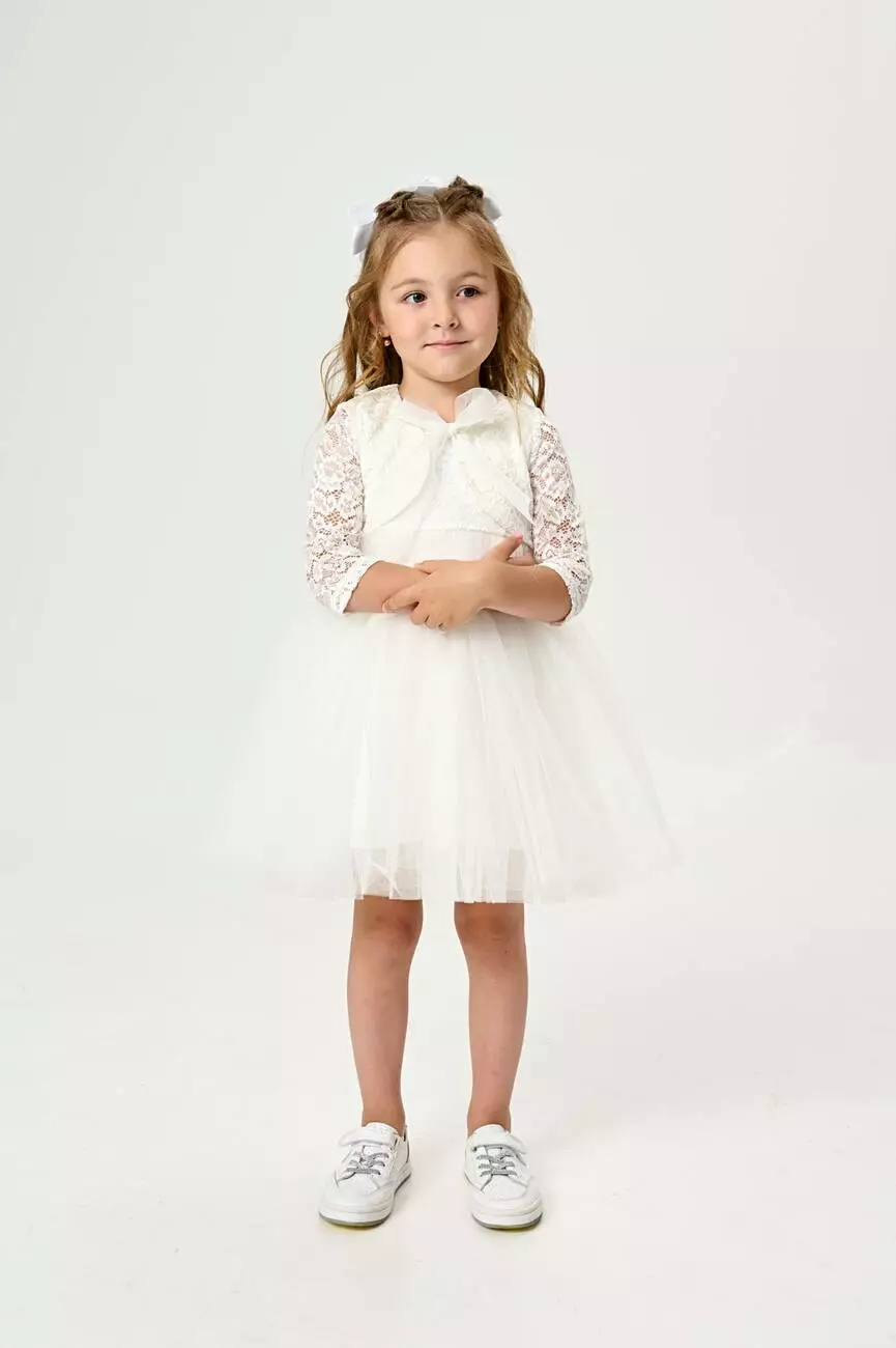 Біле болеро з мереживними рукавами - витончений та стильний аксесуар для маленьких принцес. Цей прекрасний елемент гардеробу ідеально доповнить святкове або повсякденне вбрання, додасть образу особливу ноту елегантності та вишуканості.
