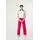 Деталі моделі: брюки малинового кольору, розкльошені від стегна до низу. Середня висота по лінії талії. Застібка на блискавці. Дві передні кишені та дві накладні задні кишені. На поясі є шльовки, можна носити з ремінцем. Матеріал - котон. Сезон: весна, осінь.