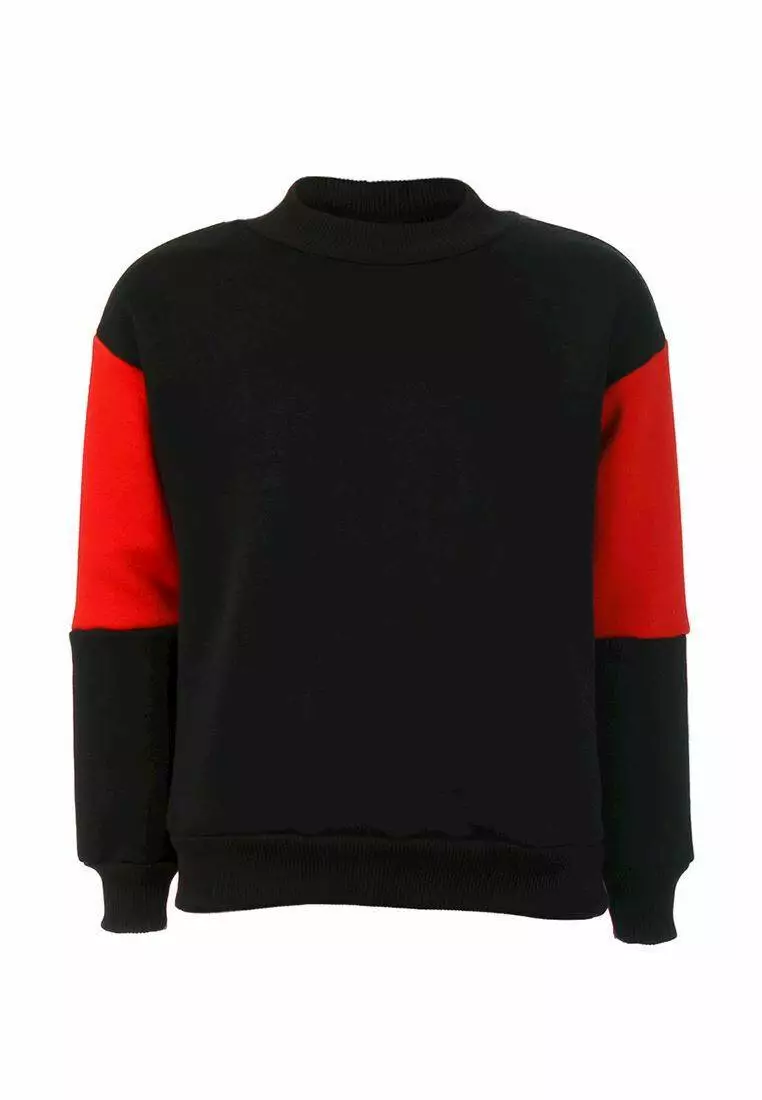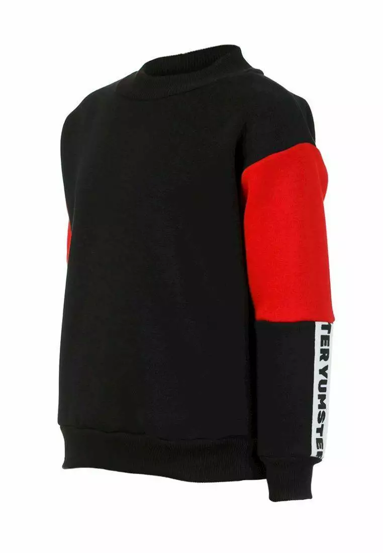 Cвітшот утеплений чорно-червоний з тасьмою на рукаві для хлопчика YC.02.09.006