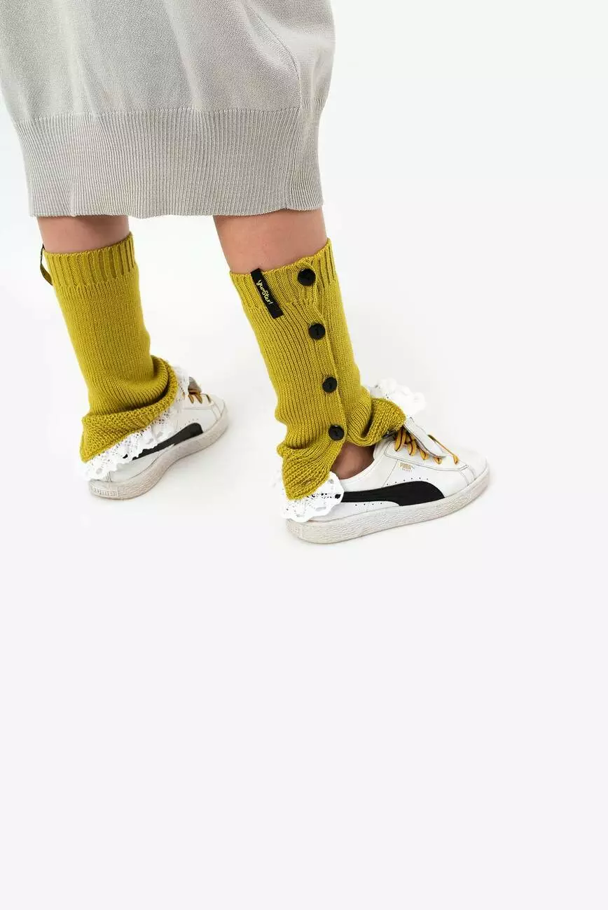 Деталі: Зелені гетри з рюшами білого кольору. Декоративні гудзики. Резинки на манжетах.
