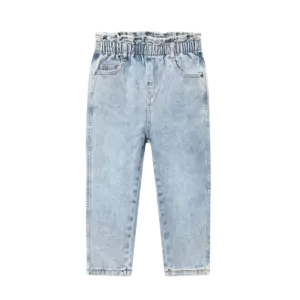 Зустрічайте нову колекцію - колаборація брендів YUMSTER і NEWNESS! Доповніть гардероб вашої маленької модниці стильними джинсами з високою талією - вона буде вдячна вам за це кожен день! Деталі моделі: джинси блакитного кольору. Брючини прямі, вільного крою. Ззаду дві накладні кишені, спереду дві кишені з відрізним бочком. Висока талія, на широкій резинці. Є шльовки під ремінь. Розмірний ряд: на зріст від 98 см до 140 смСклад: 98% бавовна, 2% еластан
