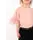 Деталі: Основний колір футболки - рожевий (пудровий). Зниження лінія плечей. Кругла горловина. На рукавах пишні волани з фатину.