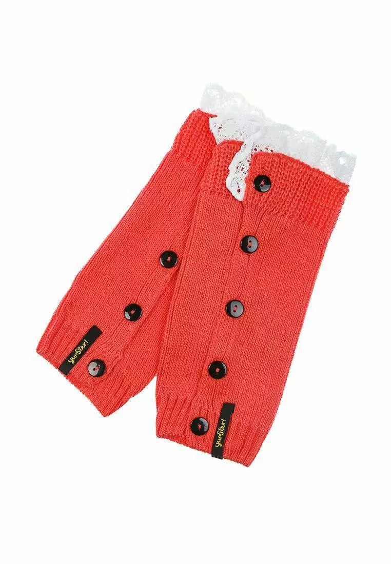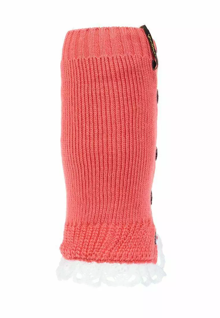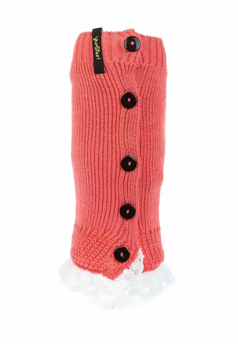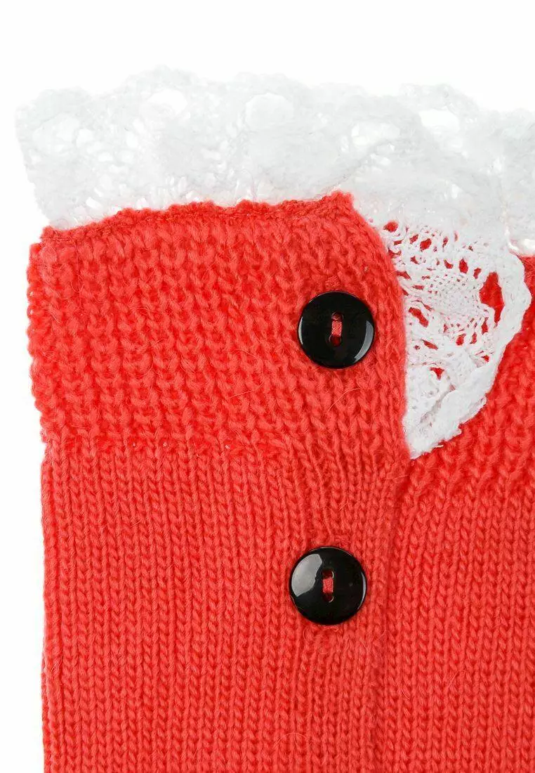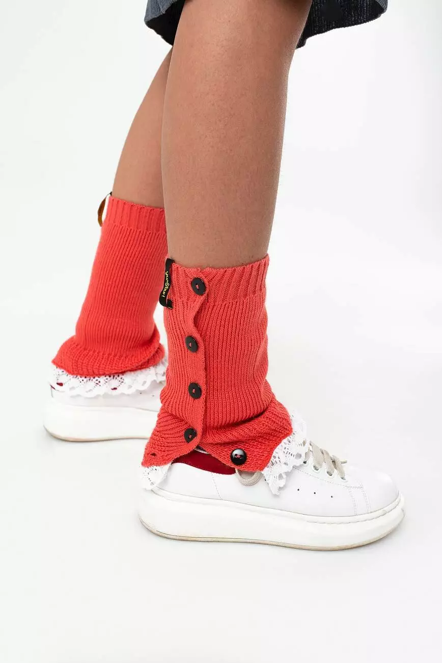 Деталі: Коралові гетри з рюшами білого кольору. Декоративні гудзики. Резинки на манжетах.