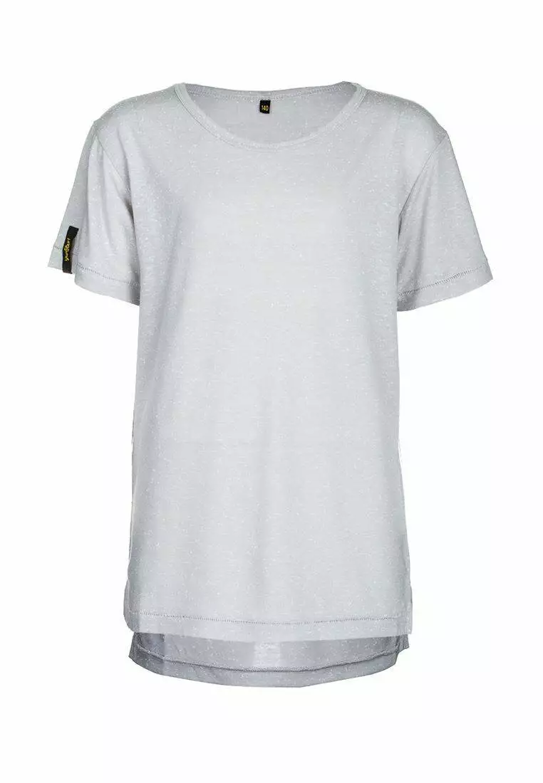 Деталі: Футболка сірого кольору. Вільний класичний крій. Кругла горловина. Короткий рукав. Подовжена спинка.