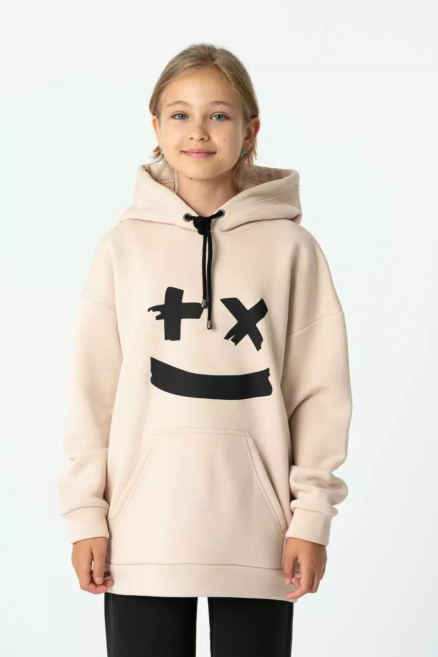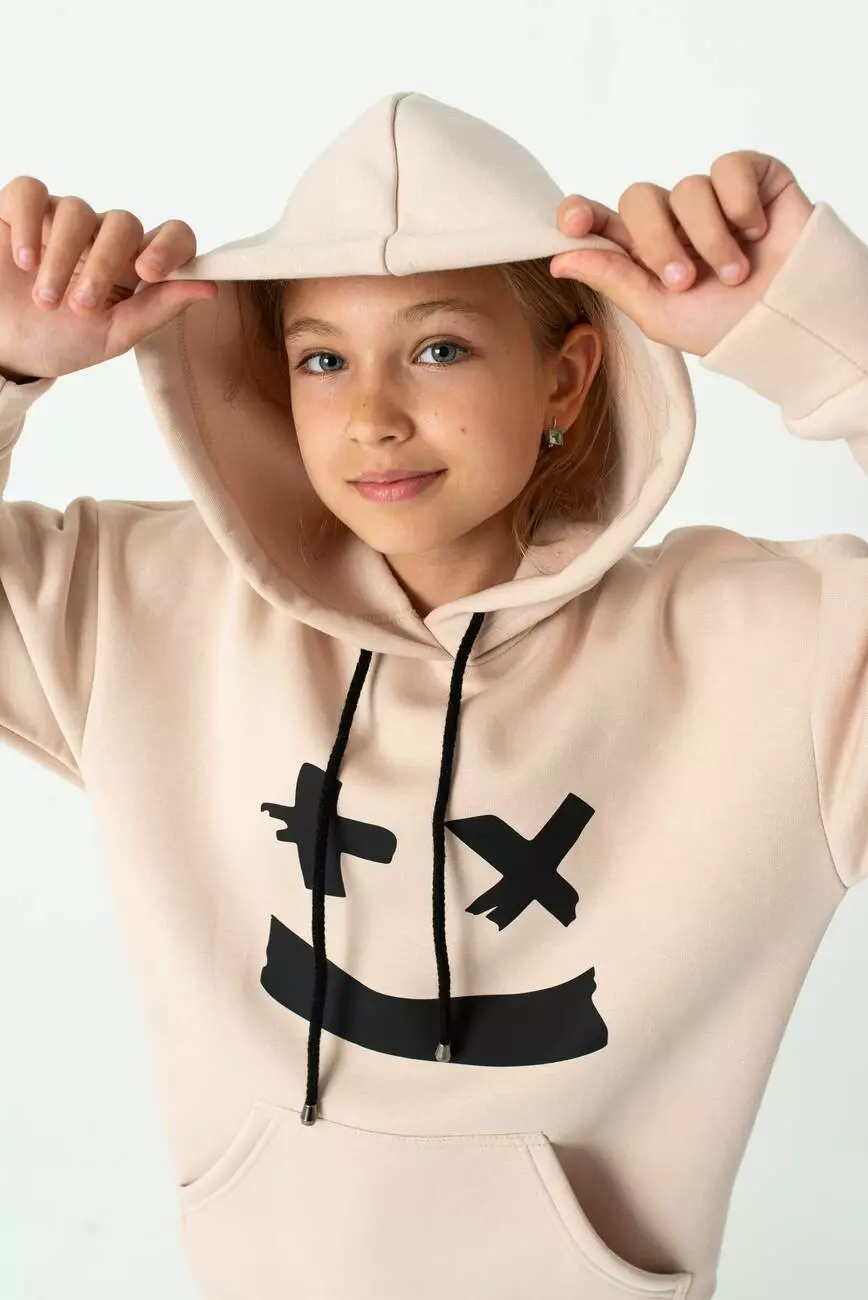 Худі бежевий зі смайлом для дівчаток YH.12.07.002