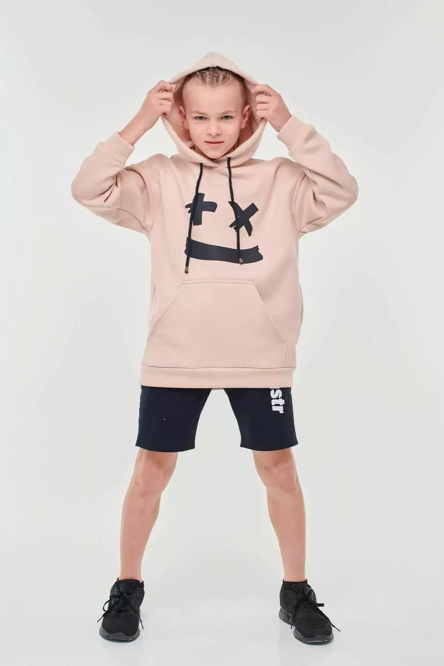 Худі бежевий зі смайлом для хлопчиків YH.12.07.002