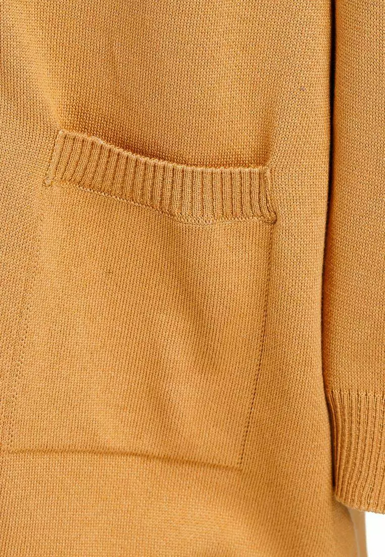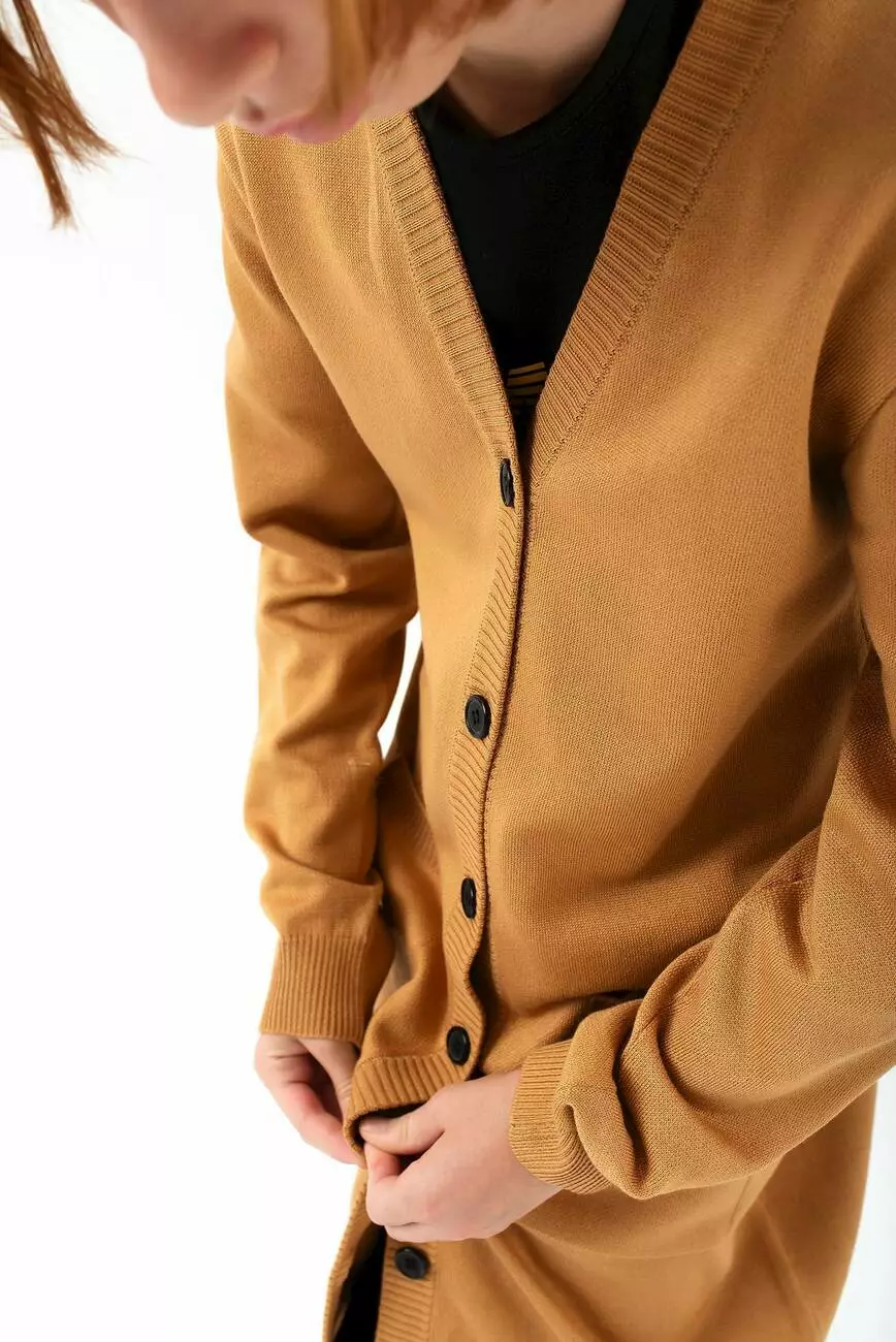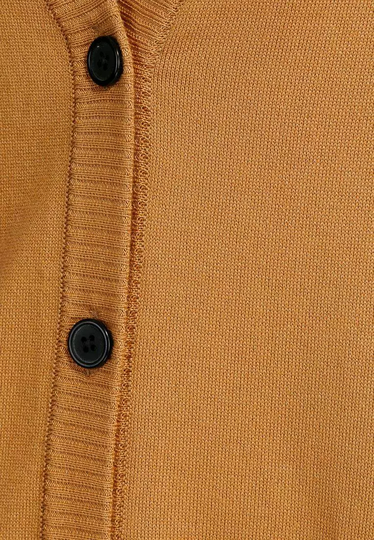 Деталі: Кардиган рудого кольору з V-вирізом. Чорні гудзики. Накладні кишені. Манжети на рукавах і подолі.