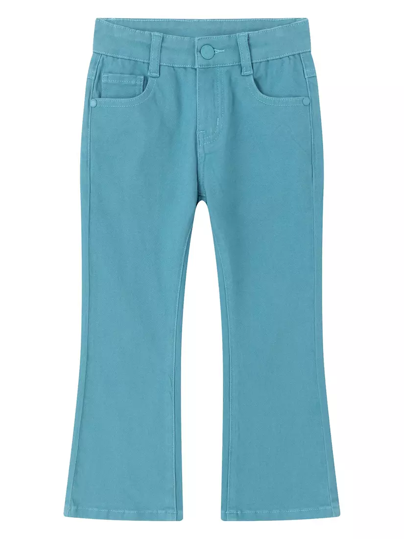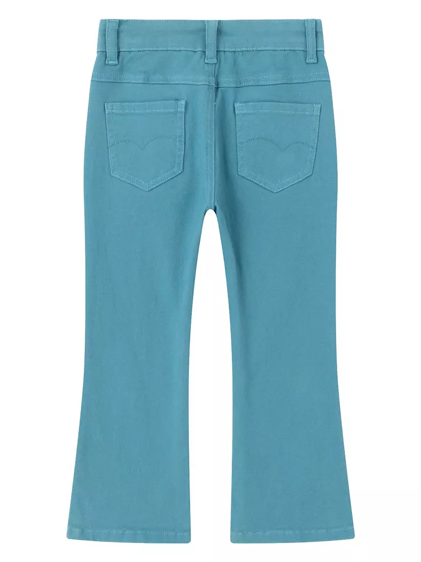 Джинси світло-блакитного кольору. Застібка - блискавка та металевий гудзик. На поясі є петлі під ремінь. З внутрішньої сторони поясу є резинка для регулювання обсягу на талії. Дві накладні кишені ззаду і два кишені спереду. Штани прямого крою, трохи розширені до низу.