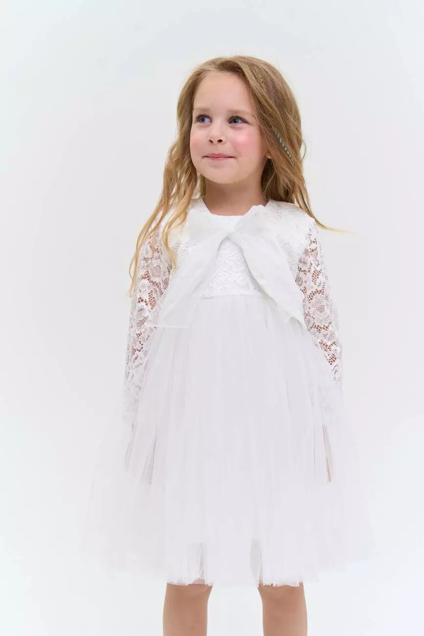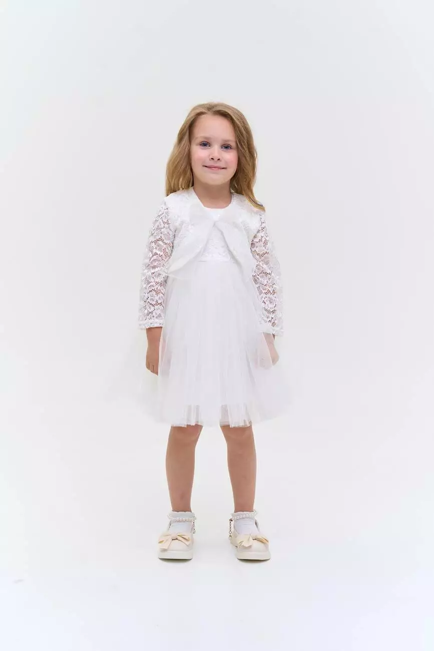 Комплект ошатний сукня та болеро з білого гіпюру YJ.21.30.003W|YJ.21.30.014