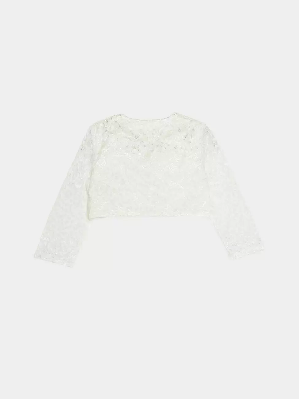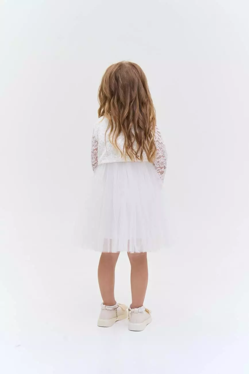 Деталі моделі: комплект з білого гіпюру - болеро та ошатне плаття.