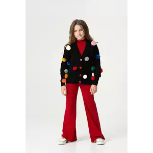 КАПСУЛА "ГАРНО ТА ТЕПЛО" Деталі моделі: костюм-трійка (гольф без рукавів, штани та кардиган). Колір червоний з чорним. Кардиган із V-подібним вирізом. Застібка – гудзики. Декор - великі кольорові помпони. Гольф однотонний, синього кольору із коміром-стійкою. Штани прямого крою, трохи розширені до низу. Пояс на резинці. Середня висота по талії. Кишень немає. Матеріал - трикотаж. Сезон – осінь-зима-весна. Розмірний ряд: на зріст від 104 см до 164 см.Склад: бавовна 90%, поліестер 10%Рекомендації щодо догляду: машинне прання при температурі 30 градусів. * Відтінок кольору на фотографії може відрізнятися від реального]]>