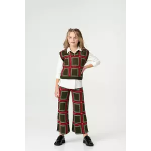 КАПСУЛА "ГАРНО ТА ТЕПЛО" Деталі моделі: костюм складається з трьох предметів: брюки, жилет та сорочка. Основний колір костюма – оливковий.Сорочка білого кольору. Класичний комір. Застібається на гудзики. Рукава ¾Жилетка із в'язаного трикотажу. Прямий крій та укорочена довжина. V-подібний виріз коміра. Дизайн - велика клітка.Брюки – кюлоти. Матеріал - в'язаний трикотаж. Дизайн - велика клітка. Пояс на резинці. Середня висота по талії. Без кишень. Розмірний ряд: на зріст від 104 см до 164 см.Склад: бавовна 90%, поліестер 10%Рекомендації щодо догляду: машинне прання при температурі 30 градусів.
