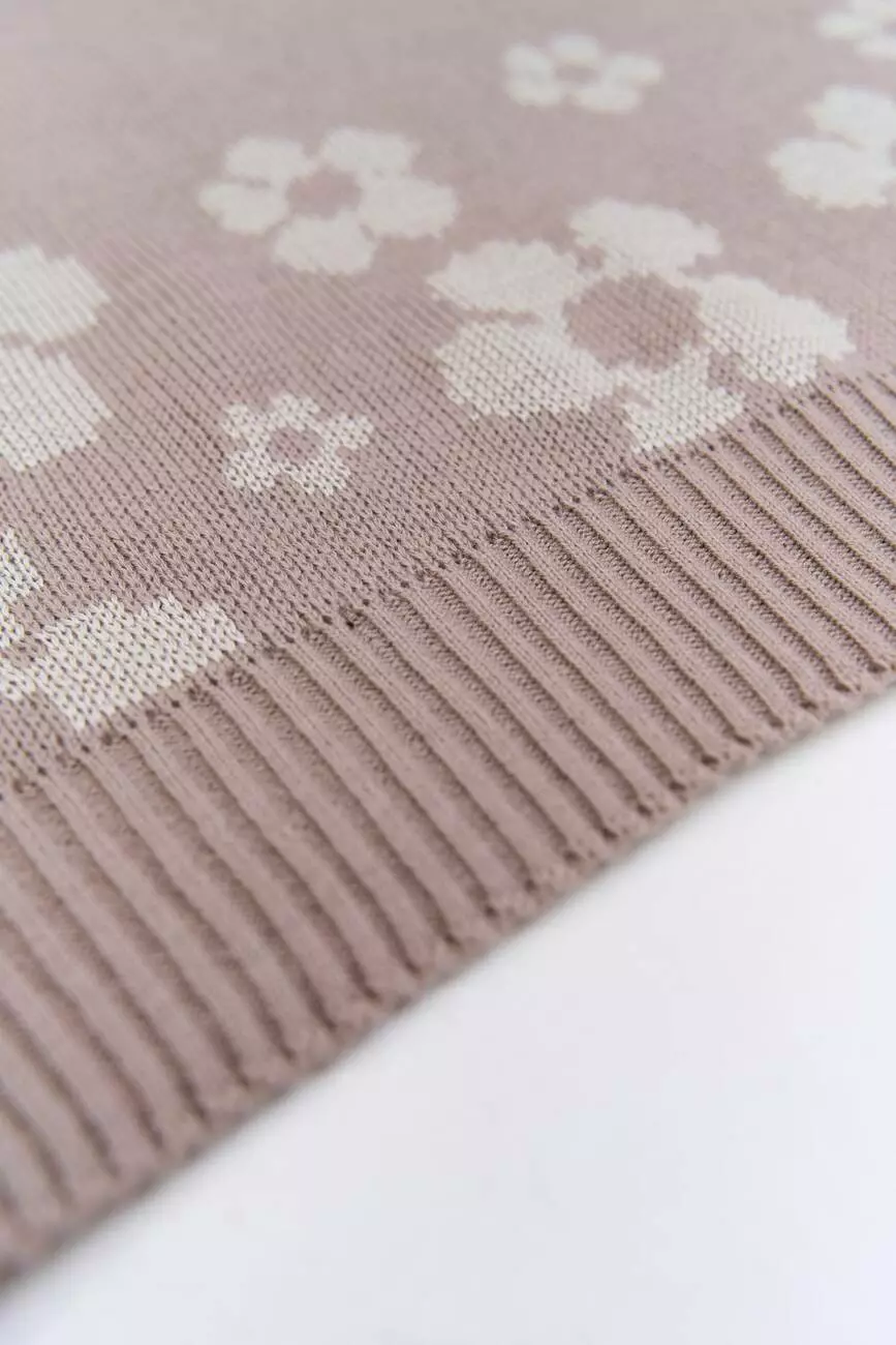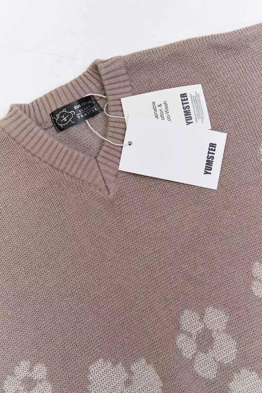 Джемпер: Фасон оверсайз. Занижена лінія плеча. V-подібний виріз горловини. Манжети та низ джемпера оформлені еластичною резинкою. Візерунок - квіти.