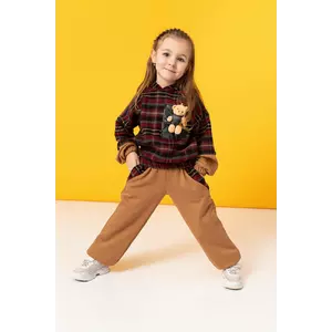 КАПСУЛА "ГАРНО ТА ТЕПЛО"Деталі моделі: Костюм двійка (брюки та толстовка). Фасон – оверсайз. Основний колір – коричневий. Дизайн - велика клітка. Декор - на грудях м'який ведмедик. Матеріал – трикотаж.