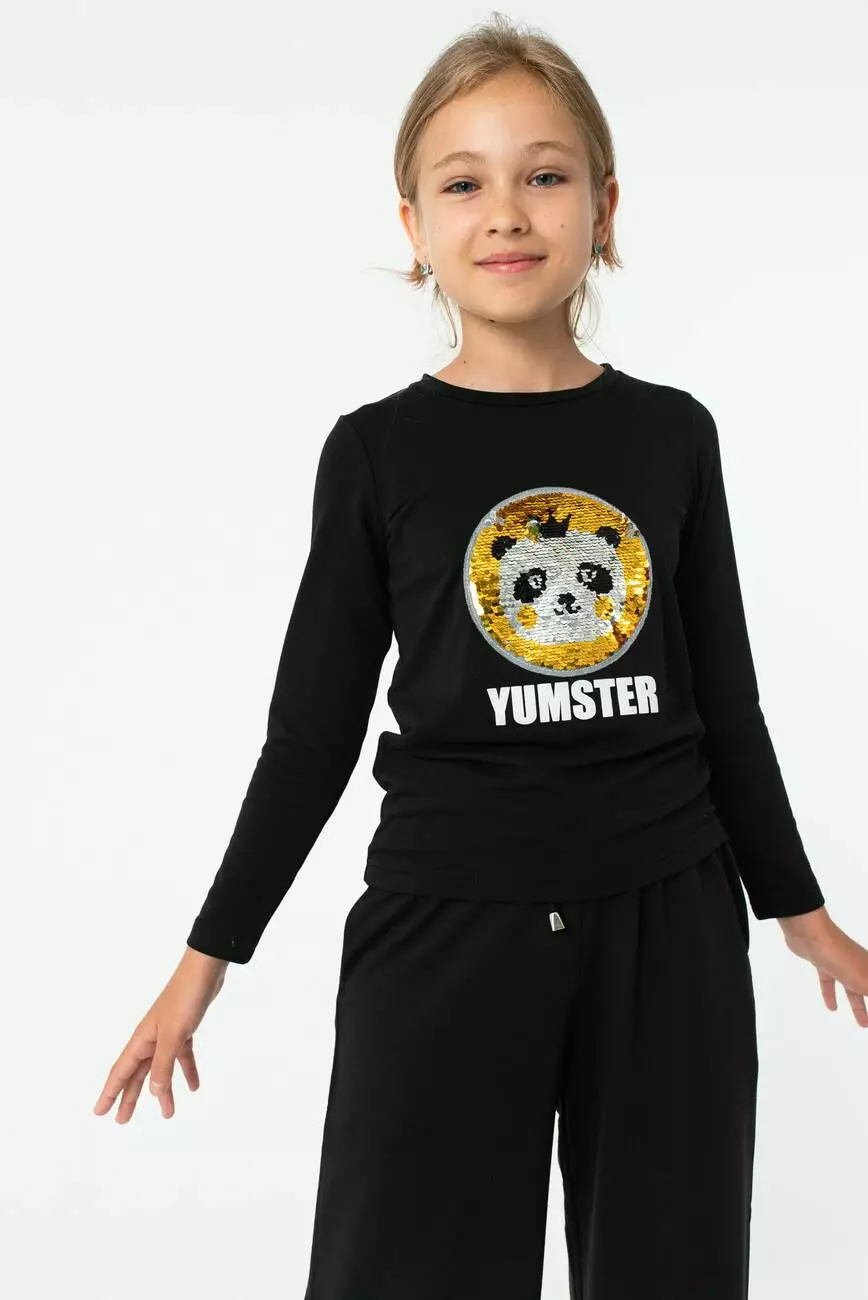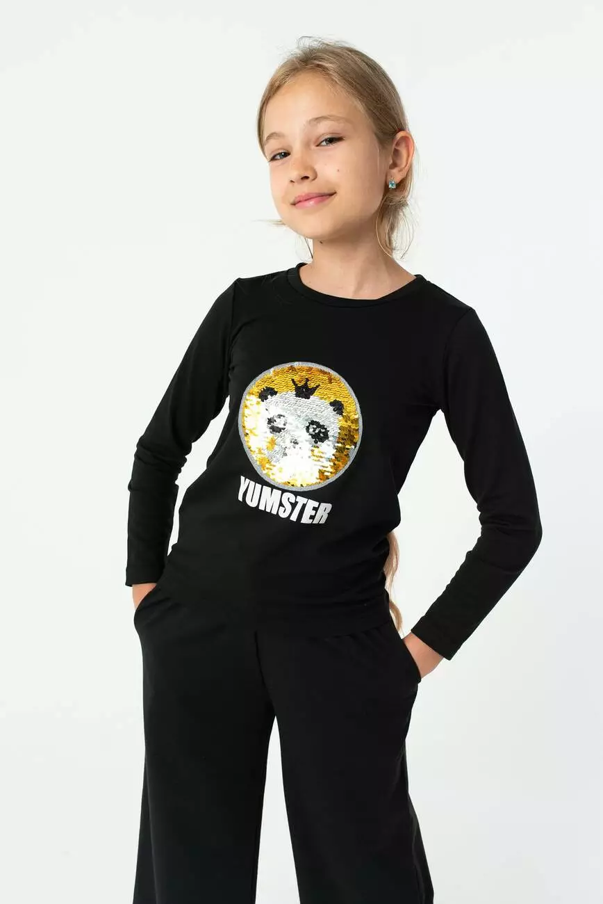 Стильний дитячий лонгслів для дівчаток. З декором із двосторонніх паєток. Розмірний ряд: на зріст від 98 см до 140 см.