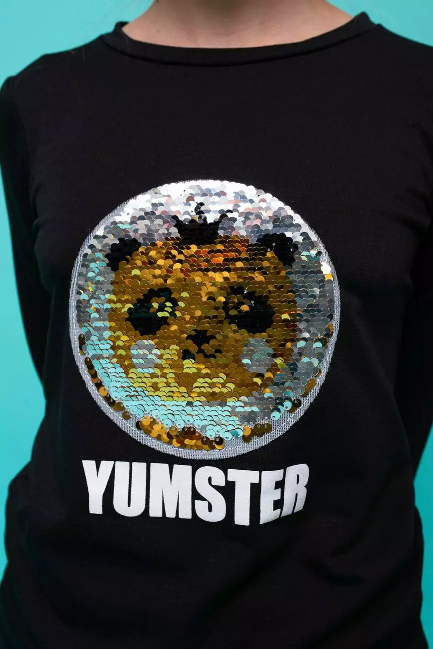 обтачкою. На грудях аплікація з двосторонніх паєток "Панда".