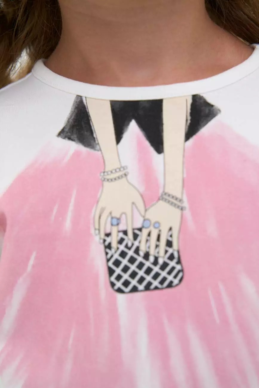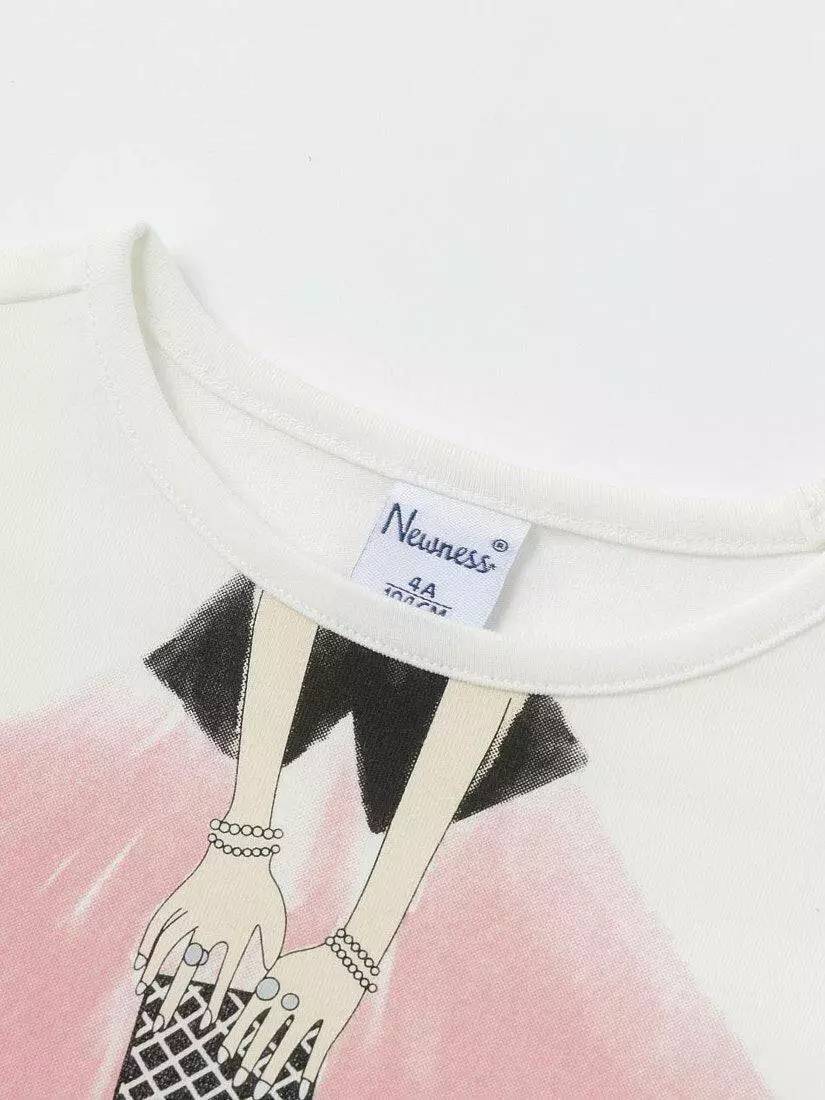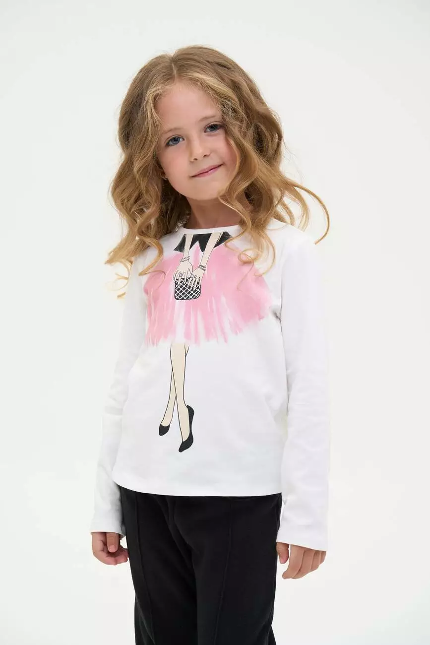 Лонгслів для дівчинки білий з принтом Елегантна леді YU.22.04.002
