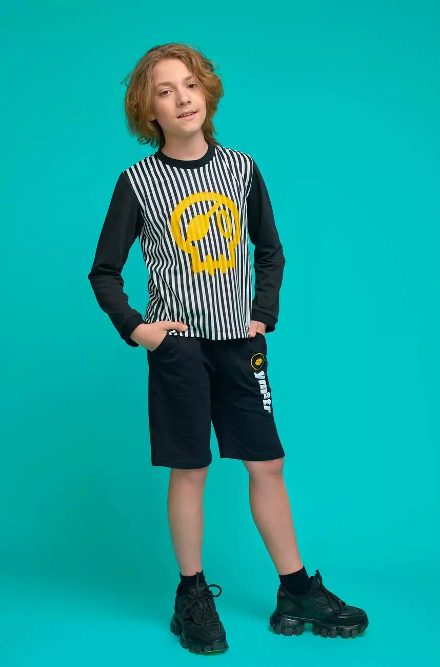 Деталі моделі: лонгслів в чорно-білу смужку. Кругла горловина. Рукава - однотонні, чорного кольору. Манжети на горловині та рукавах виконані з якісної рибани. На грудях жовтий принт - череп.Склад: 70% бавовна, 30% поліестерРекомендації по догляду: машинне прання при температурі 30 градусів. *Відтінок кольору на фотографії може відрізнятися від реального]]>- Дата публікації: 20.02.2024