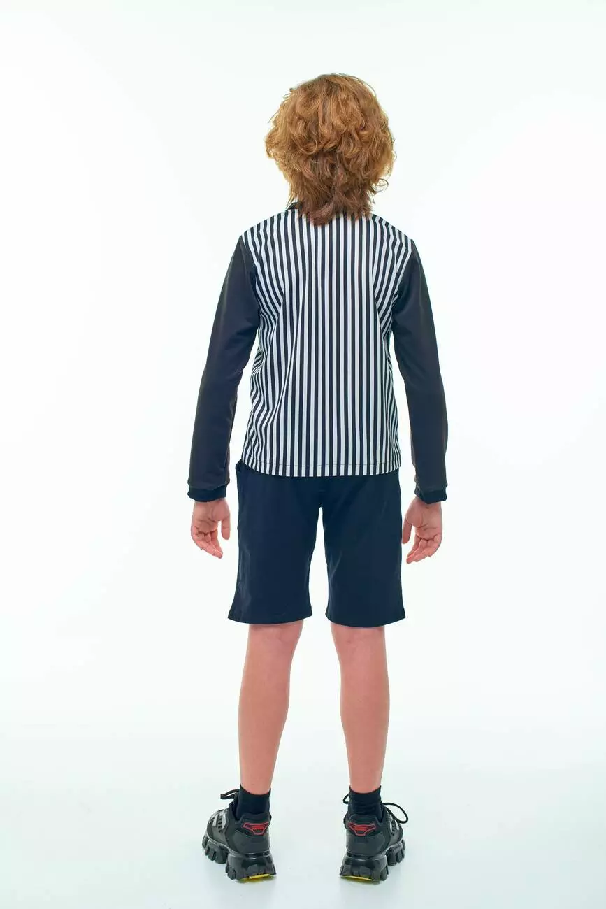 смужку. Кругла горловина. Рукава - однотонні, чорного кольору.