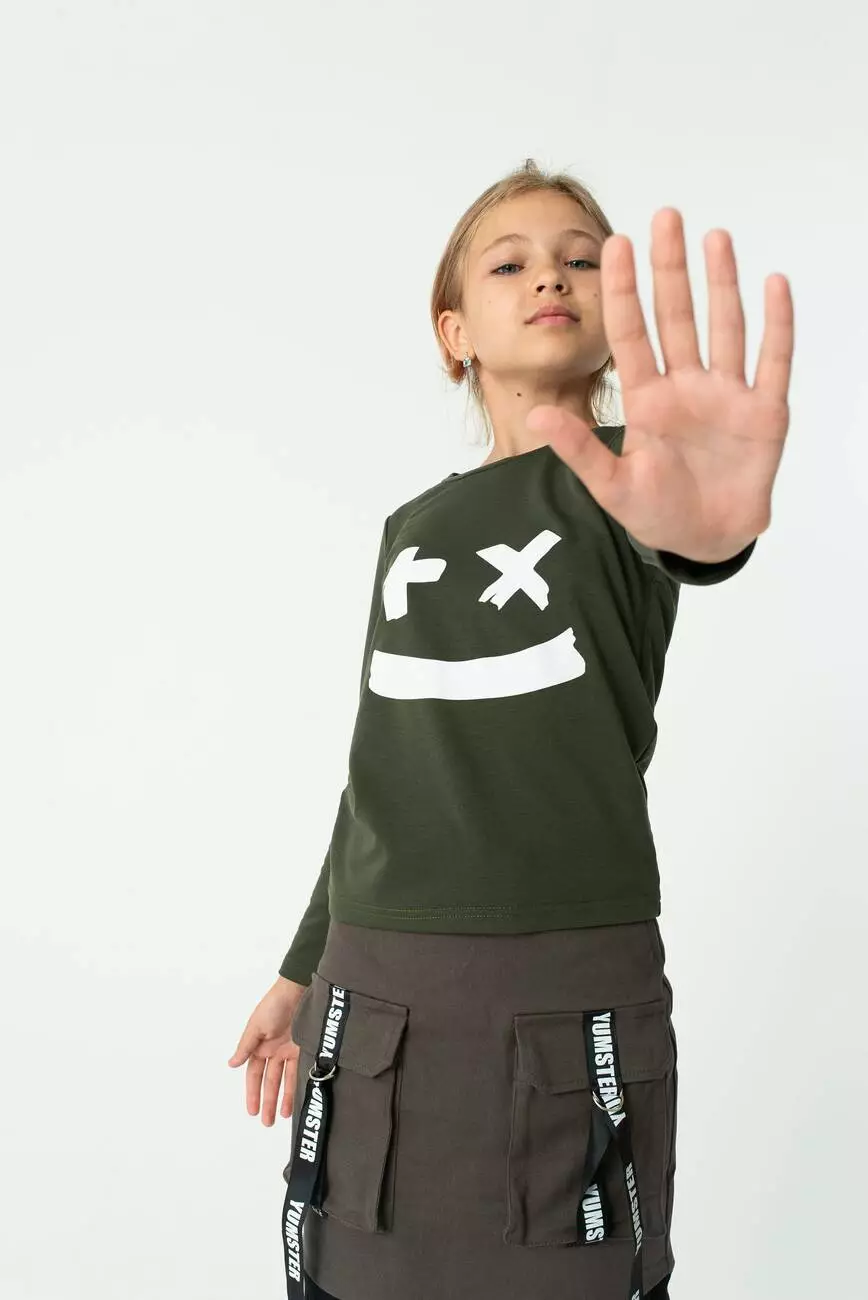 Лонгслів зелений з принтом для дівчинки YH.01.04.003