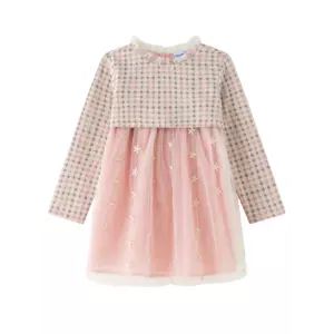 Зустрічайте нову колекцію - колаборація брендів YUMSTER і NEWNESS! Дивовижна дитяча ошатна сукня Babydoll - ідеальний вибір для особливих моментів. Елегантний дизайн створює вишуканий образ, підкреслюючи ніжність та грацію вашої маленької модниці. Нехай кожна мить стане особливим у цьому чарівному вбранні! Деталі моделі: сукня пудрового кольору. Кругла горловина. Довгий рукав. Топ сукні виконаний із в'язаного трикотажу. Ззаду асиметрична спинка, що застібається на перламутровий гудзик. Нижня частина сукні оздоблена шаром фатину з вишитими золотими зірками. Розмірний ряд: на зріст від 98 см до 140 смСклад: 40% віскоза, 40% поліестер, 20% нейлон