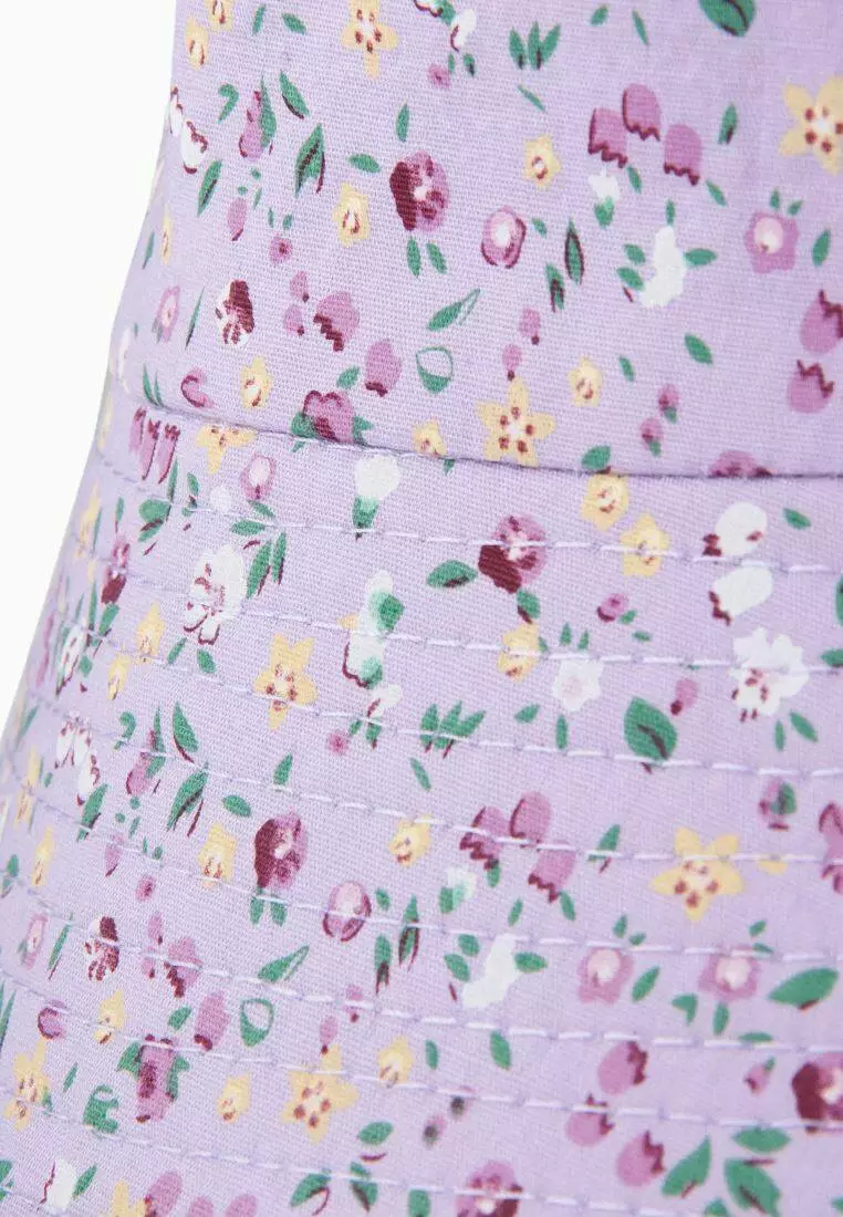 Панама дитяча. Основний колір - лаванда. Принт - дрібна квіточка. Верх 100% бавовна. Підкладка 100% бавовна - бязь. Поля панамки відстрочені декоративними стежками.