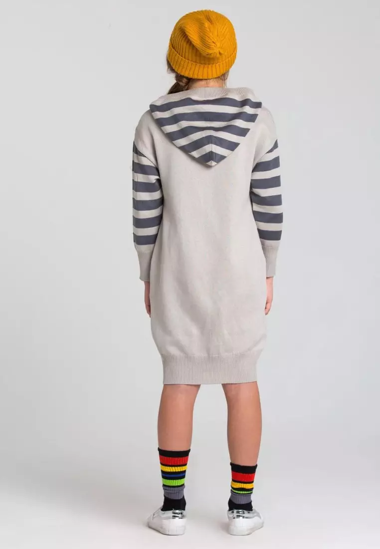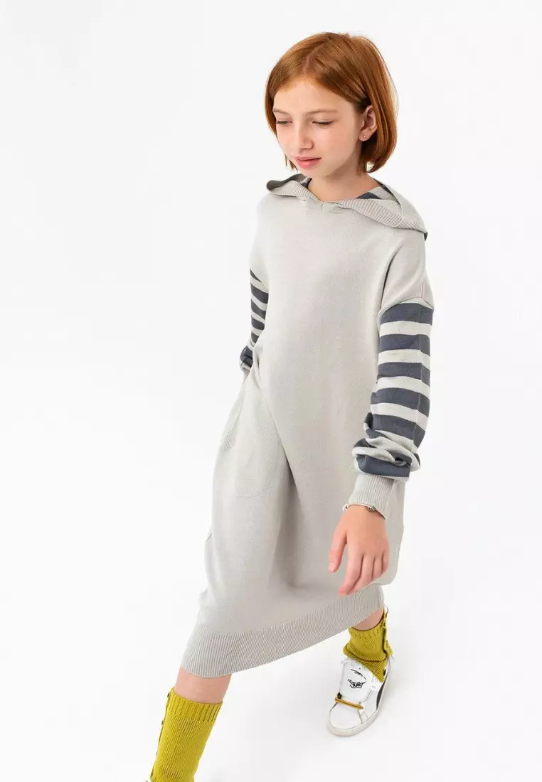 Деталі: Основний колір - сірий. Принт "смужка" на рукавах і капюшоні. Накладні бокові кишені. Резинка на манжетах і подолі плаття.