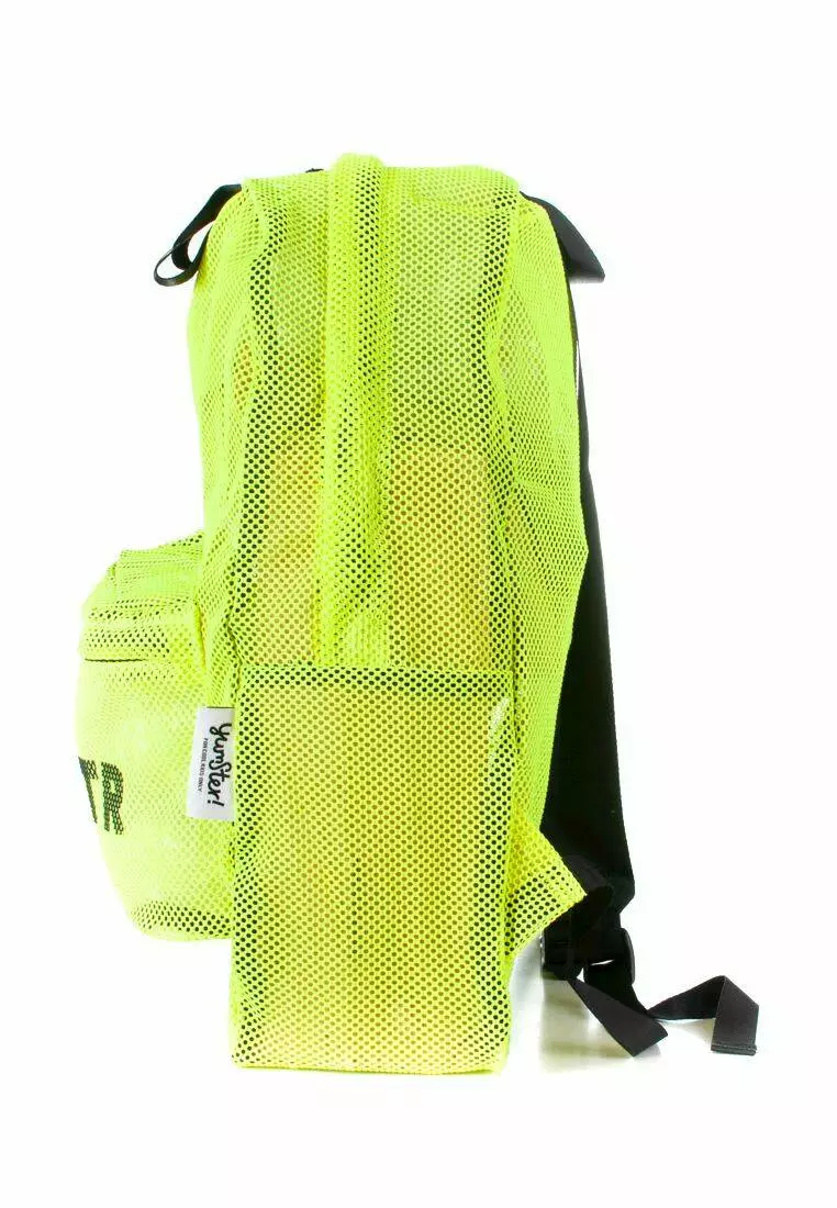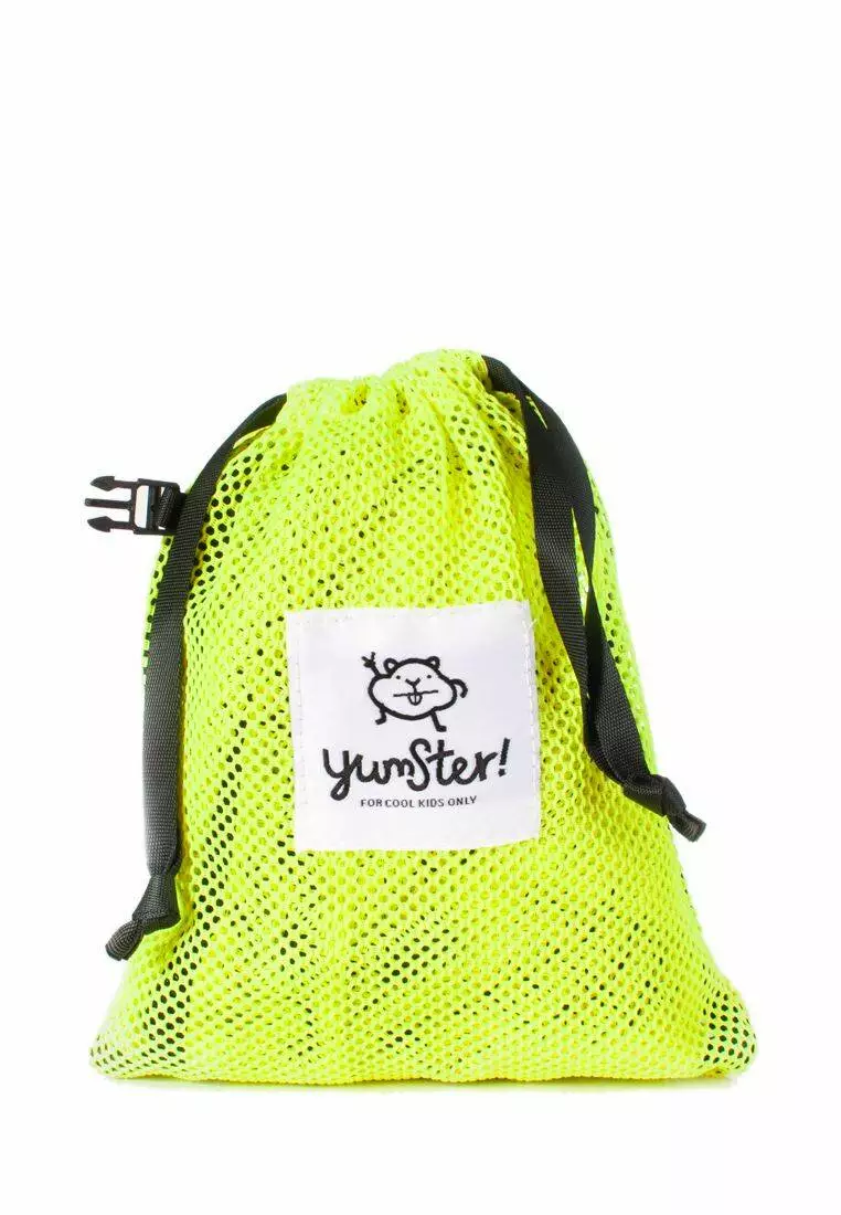 Деталі: Матеріал виробу - міцна сітка. Колір - салатовий. Колір фурнітури - чорний. Основний відділ на змійці з двома бігунками, на яких велика брендова бирка (хлястик). Містка зовнішня кишеня c фірмовим принтом "Yumster". Широкі шлейки регулюються по довжині (не будуть тиснути або натирати дитині плечі). Мішок для зберігання рюкзака кріпиться всередині основного відділення на карабіні (що виключає можливість його втрати)