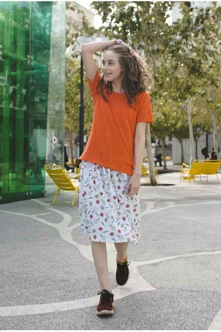 Легка трикотажна спідниця з яскравим принтом вільного крою нижче колін.