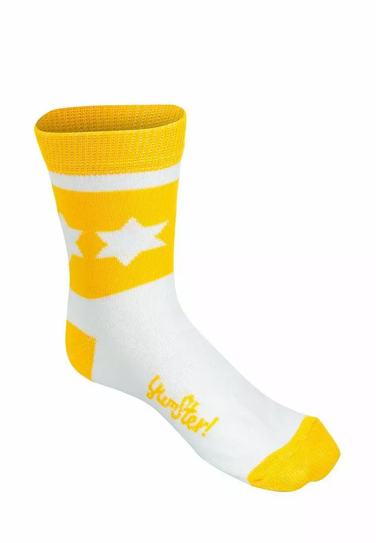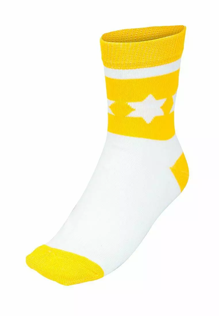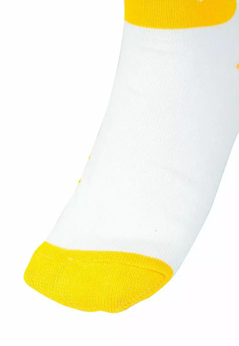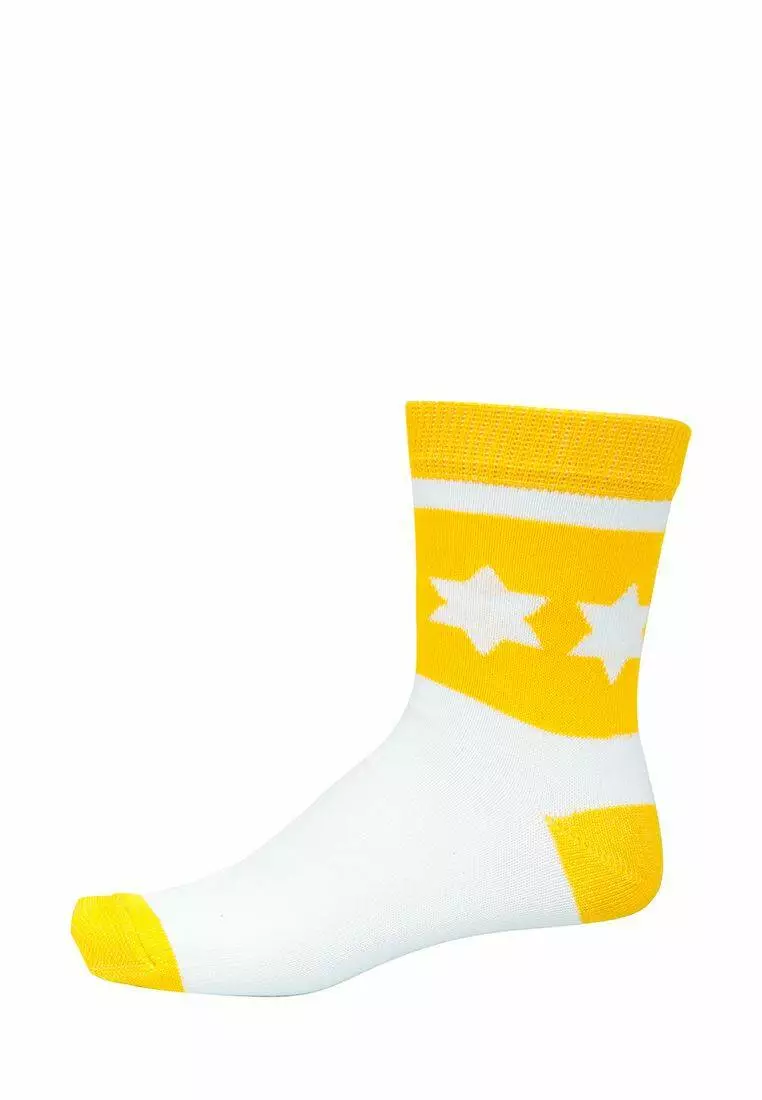 Деталі: Яскраві шкарпети біло-жовтого кольору. Дизайн - зірки. Міцна резинка. Фірмовий принт.