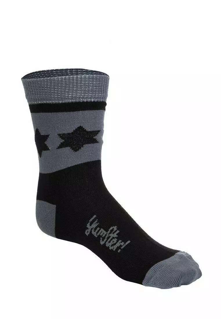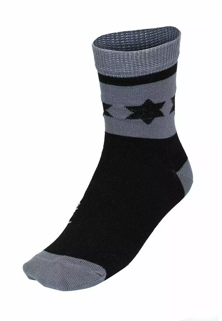 Деталі моделі: Чорно-сірі носки на резинці. Дизайн - зірки. Фірмовий принт "Yumster". Розмір від 22 до 34.