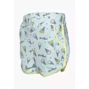 Деталі: Основний колір шорт - бірюзовий. Дизайн - патерн "морозиво". Якісна резинка. Жовті лампаси. Дві бічні кишені. Середня висота посадки.