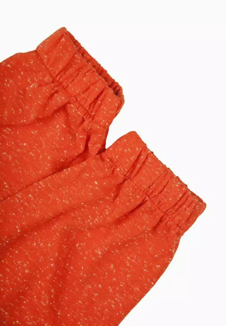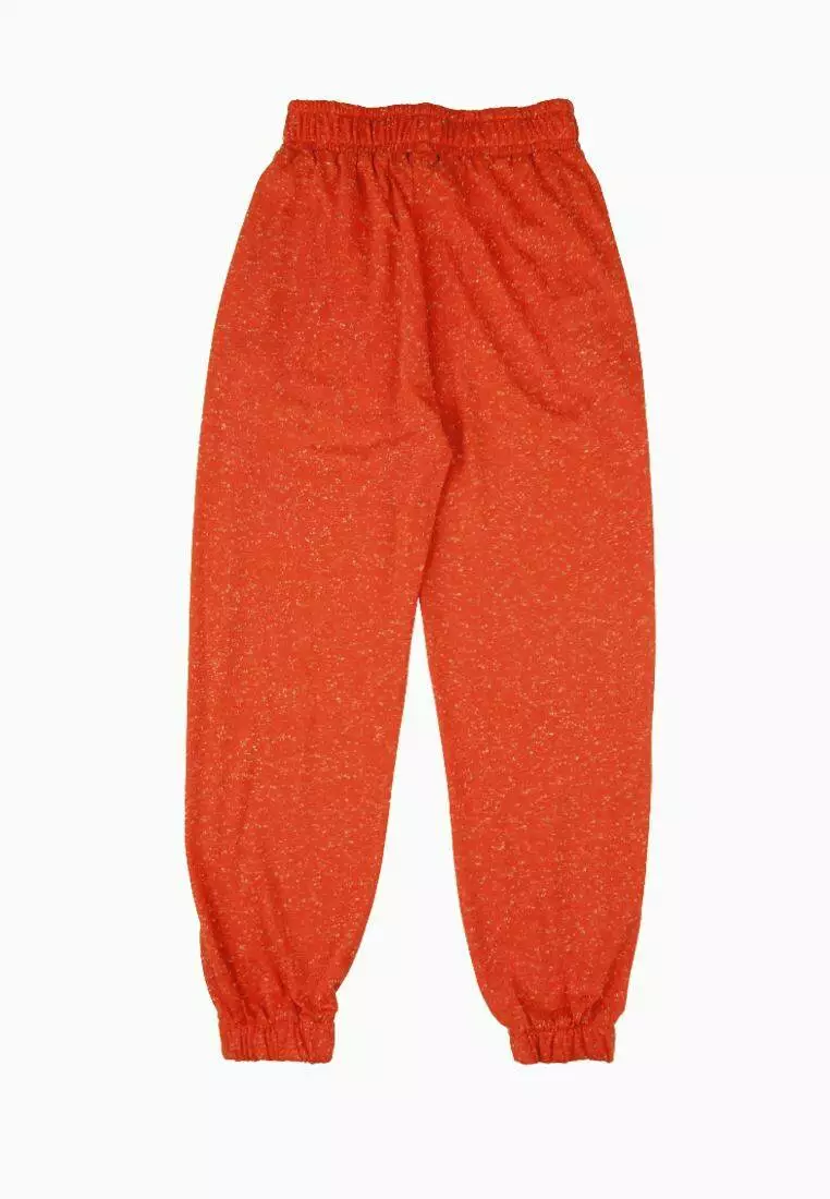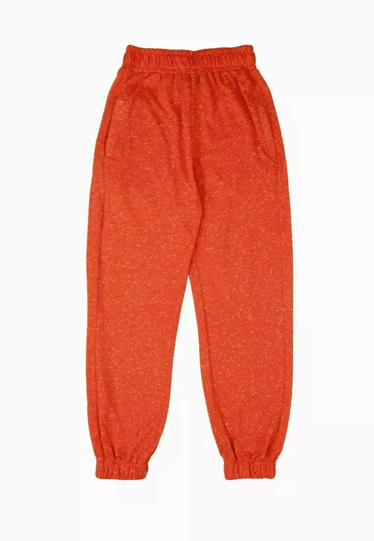 Деталі моделі: Основний колір - червоний. Штани напівприлягаючого силуету зі зміщеними бічними швами. Є дві бічні кишені. У поясі і по низу брюк вставлена резинка. Без декору.
