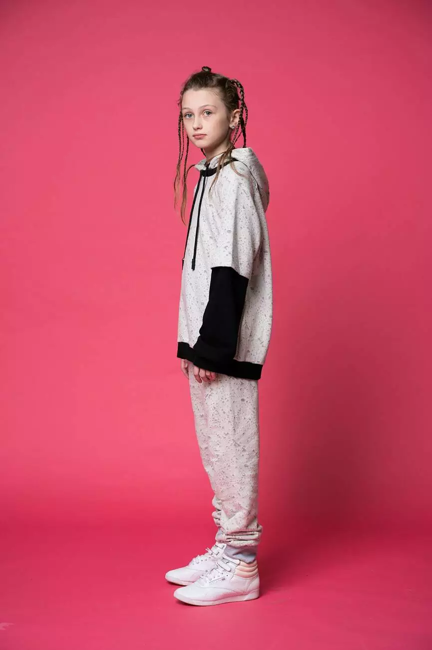 Деталі моделі: Колір худі: світло-сірий з чорним.