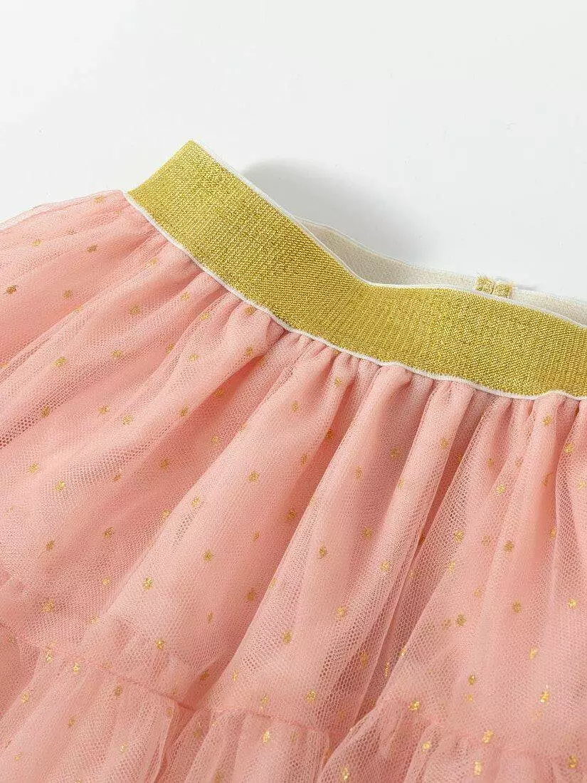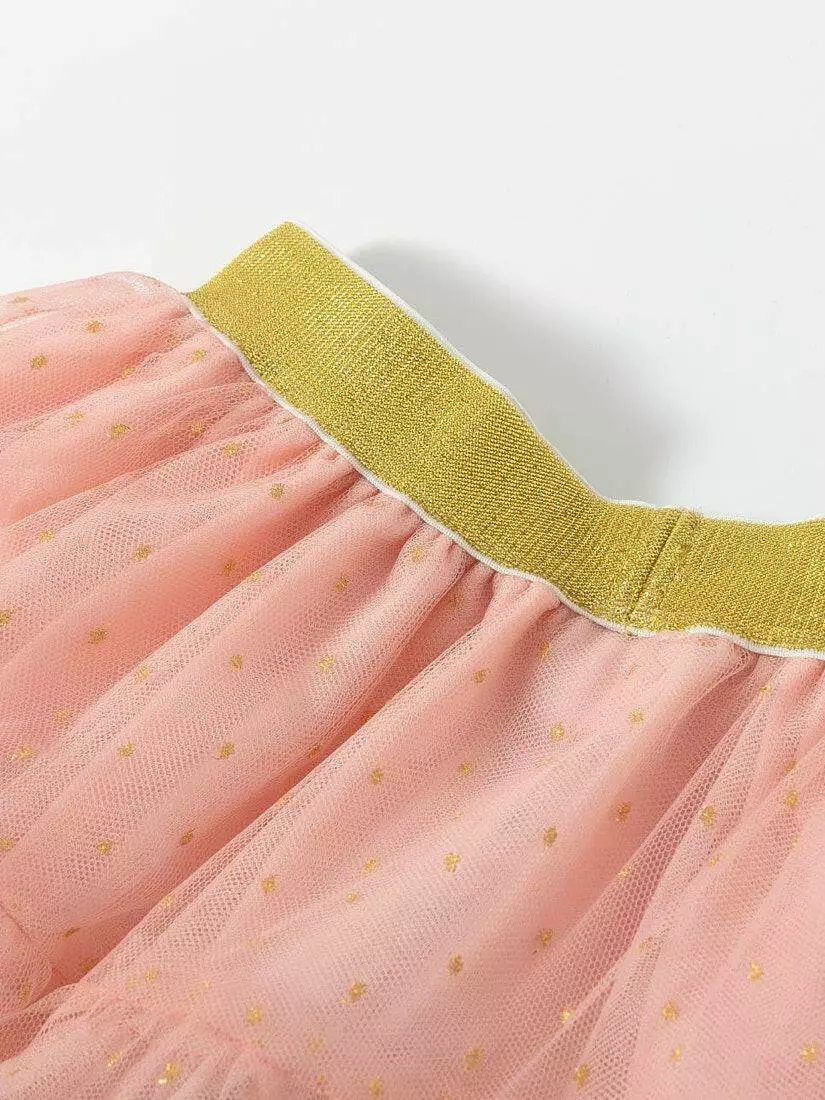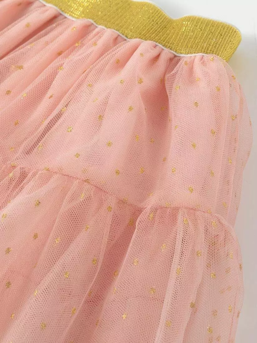 Зустрічайте нову колекцію - колаборація брендів YUMSTER і NEWNESS! Ідеальна спідниця для особливих випадків. Пишна та легка – це втілення стилю, витонченості та неповторності! Деталі моделі: спідниця чорного кольору. Пояс на резинці. Кілька ярусів фатина + непрозорий під’юбник чорного кольору. Декор - напилення золотого та чорного кольору у вигляді дрібного горошку. Розмірний ряд: на зріст від 98 см до 140 смСклад: 100% поліестер