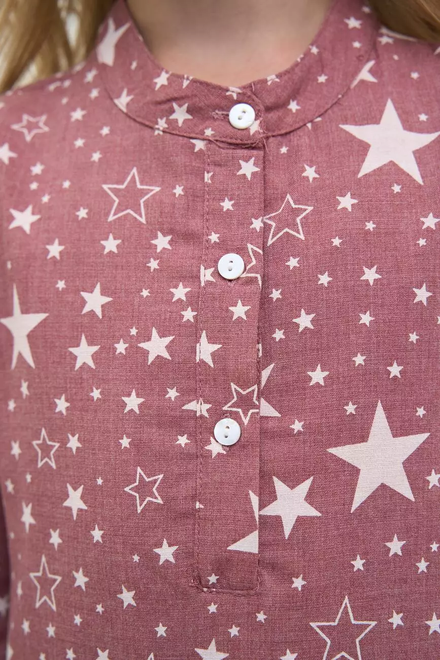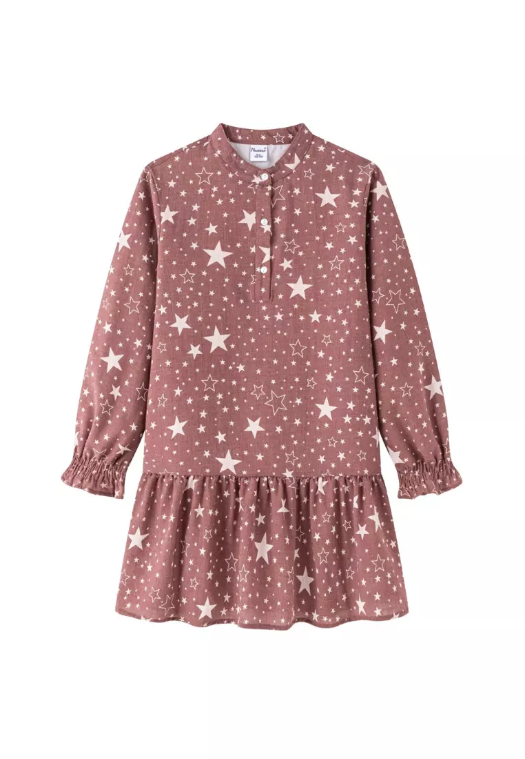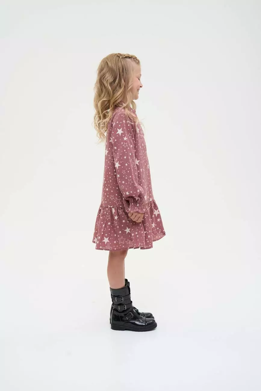 Зустрічайте нову колекцію - колаборація брендів YUMSTER і NEWNESS! Деталі моделі: колір пудровий. Довгий рукав. Кругла горловина. Комірець стійка. Попереду застібка на кнопки. Занижена лінія талії. Спідниця у вигляді широкого рюшу. Сукня вільного крою. Довжина виробу – до колін. Розмірний ряд: на зріст від 128 см до 164 смСклад: 55% віскоза, 45% бавовна