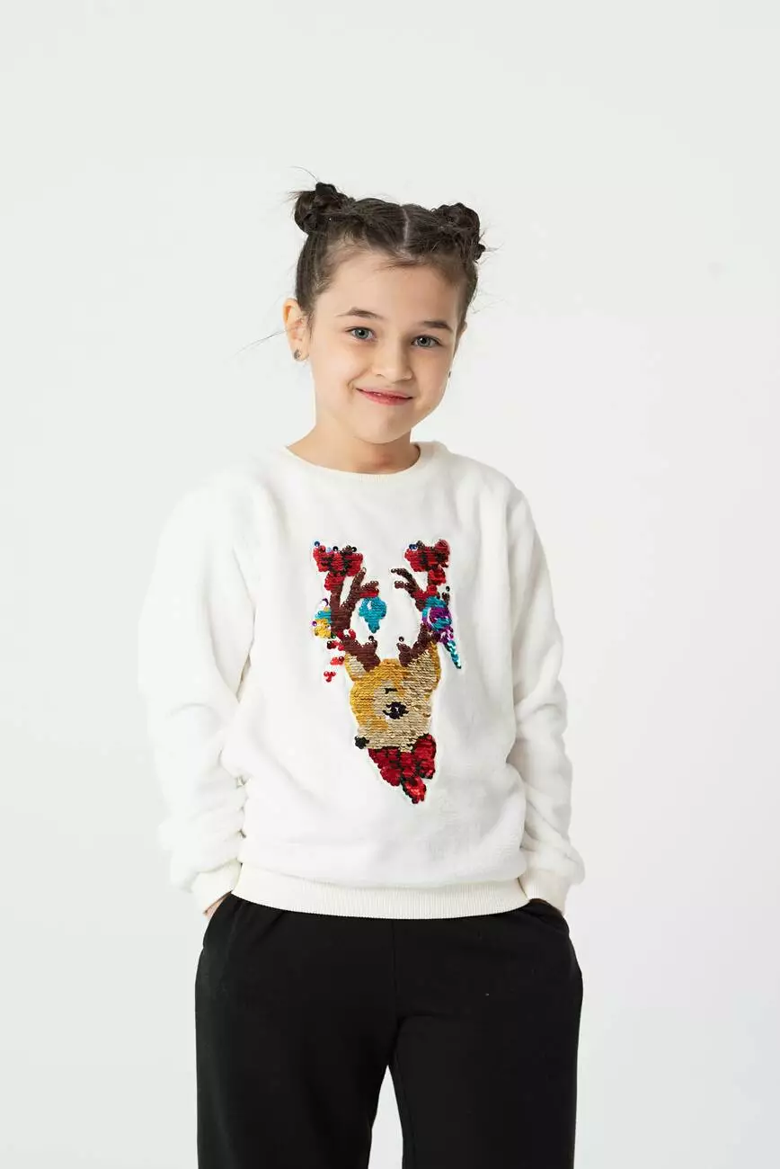 Світшот білий з аплікацією із паєток Олень YI.22.09.002