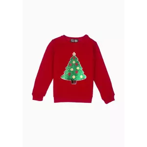 Деталі моделі: світшот червоного кольору. Кругла горловина. Манжети на рукавах та по низу із якісної рибани. На грудях декоративна аплікація з двосторонніх паєток у вигляді Ялинки. Без кишень. Тканина - тринитка на флісі.