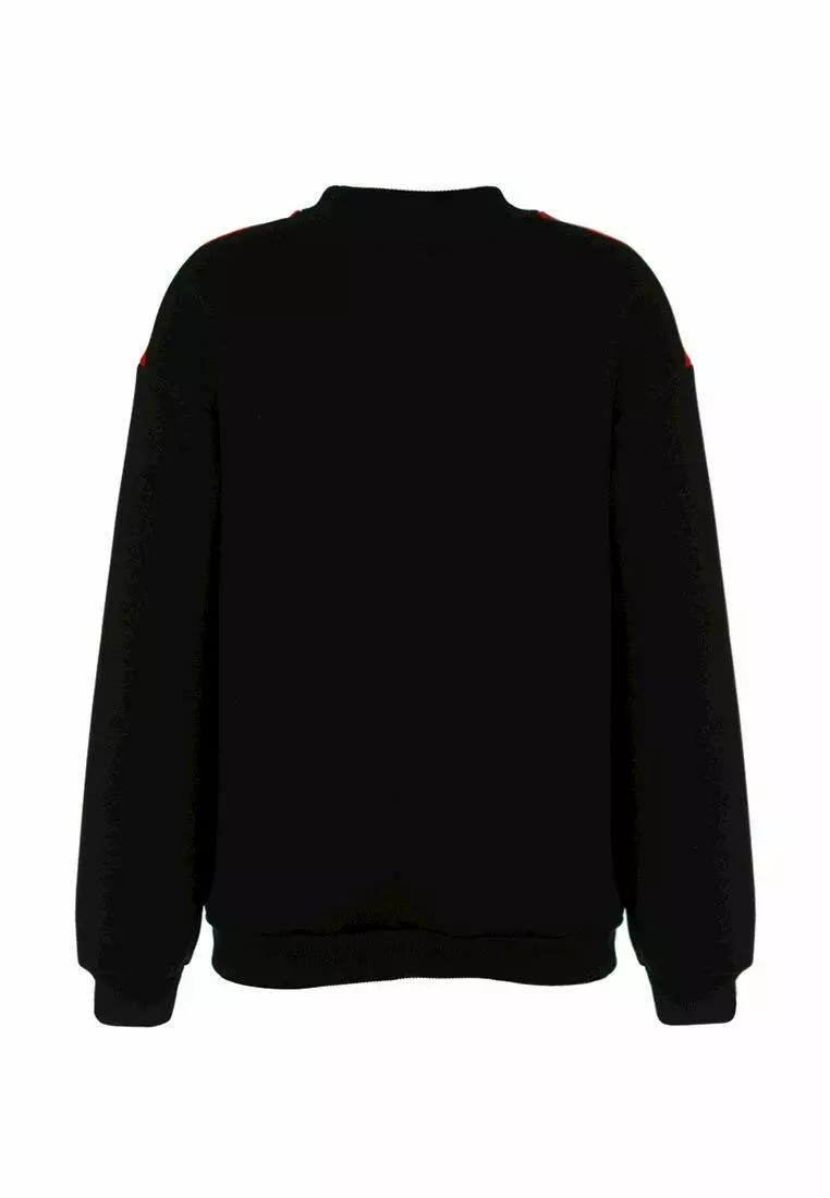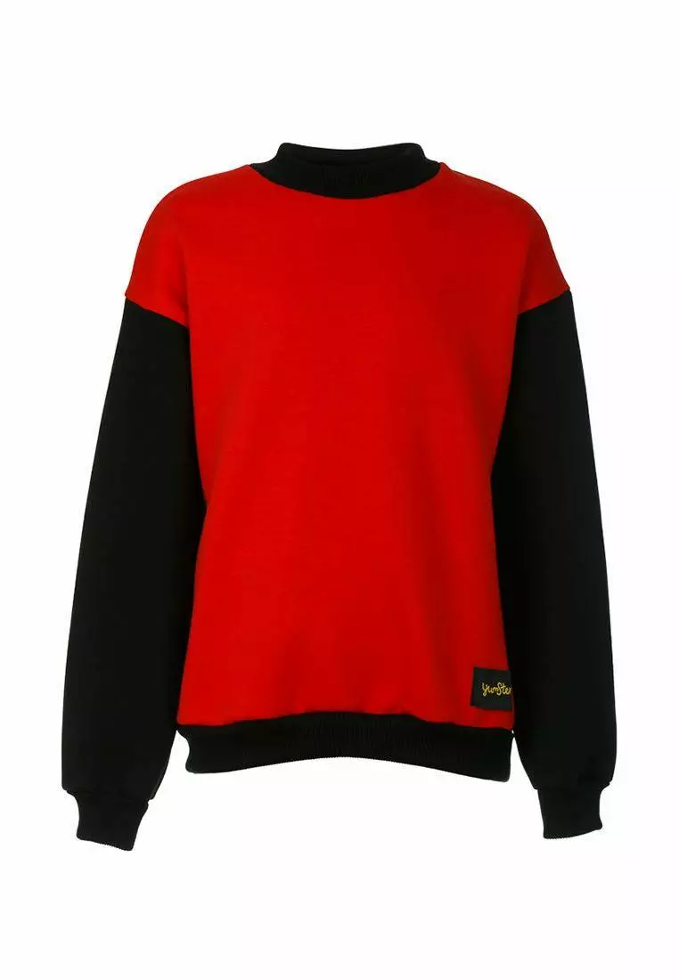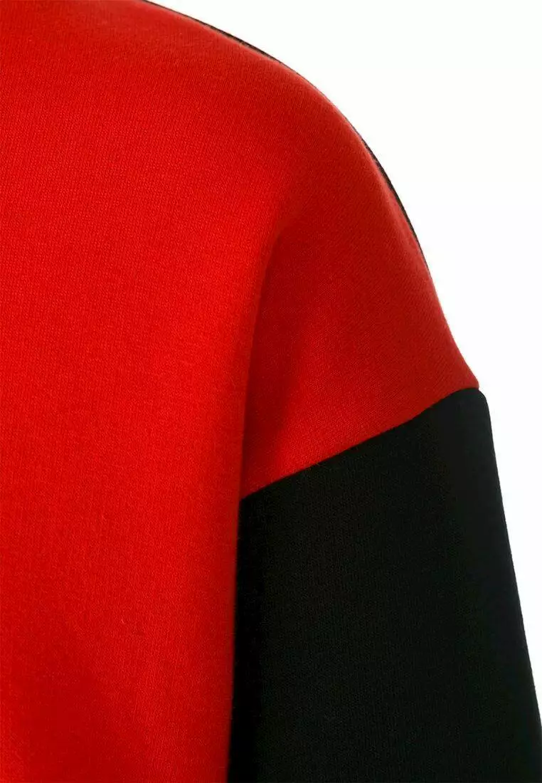 Деталі: Світшот червоного кольору. Чорні рукави. Манжети з резинкою на подолі і рукавах. Трьохнитка. Виконаний з якісної тканини: не линяє, не втрачає форму.
