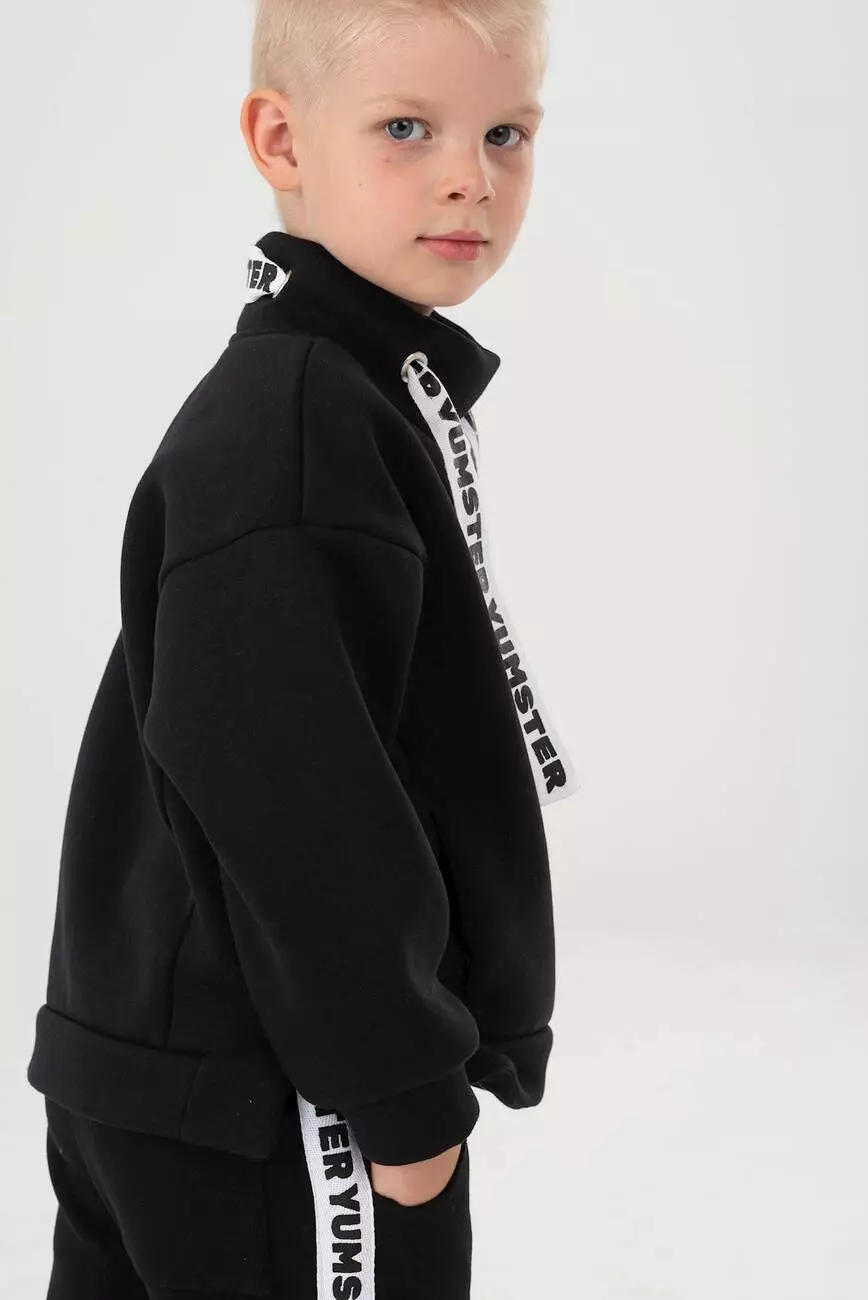Деталі: Світшот чорного кольору. Резинка на манжетах. Біла тасьма з фірмовим принтом. Утеплений флісом.
