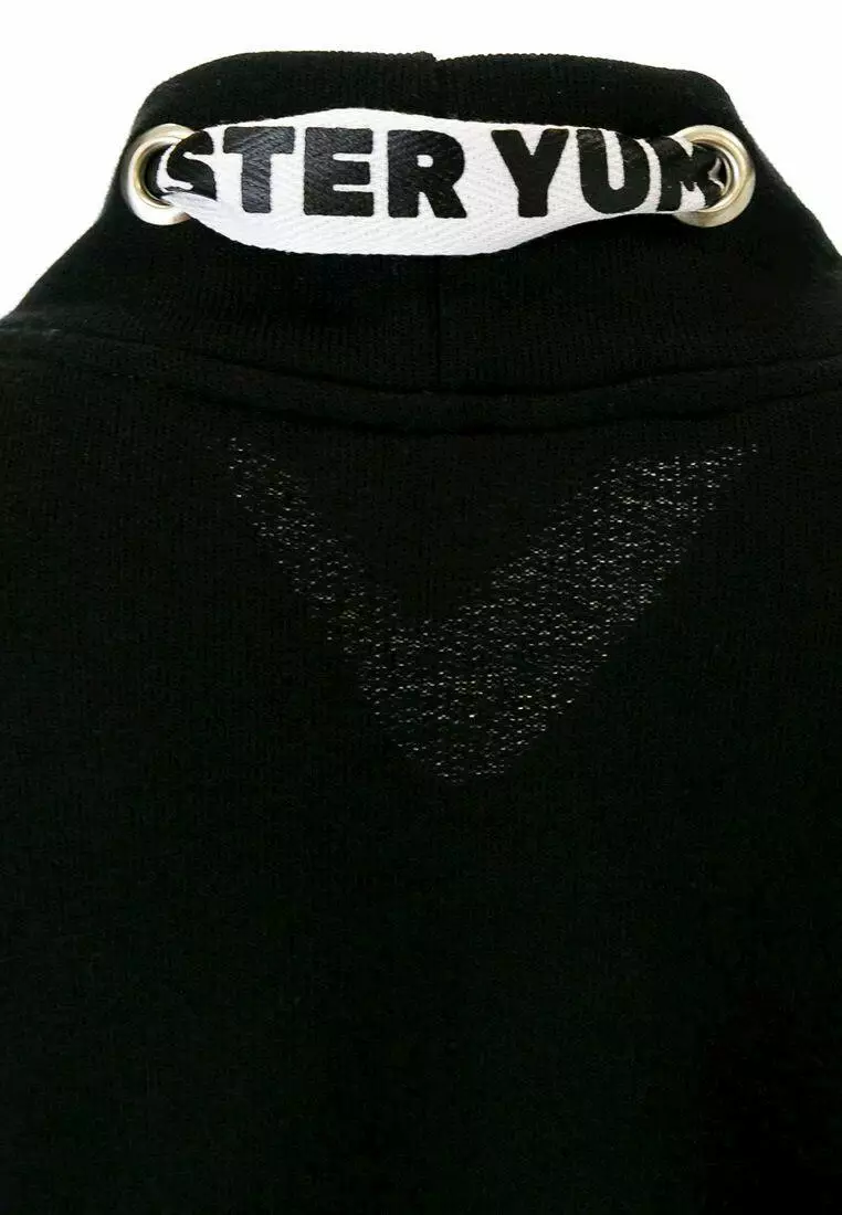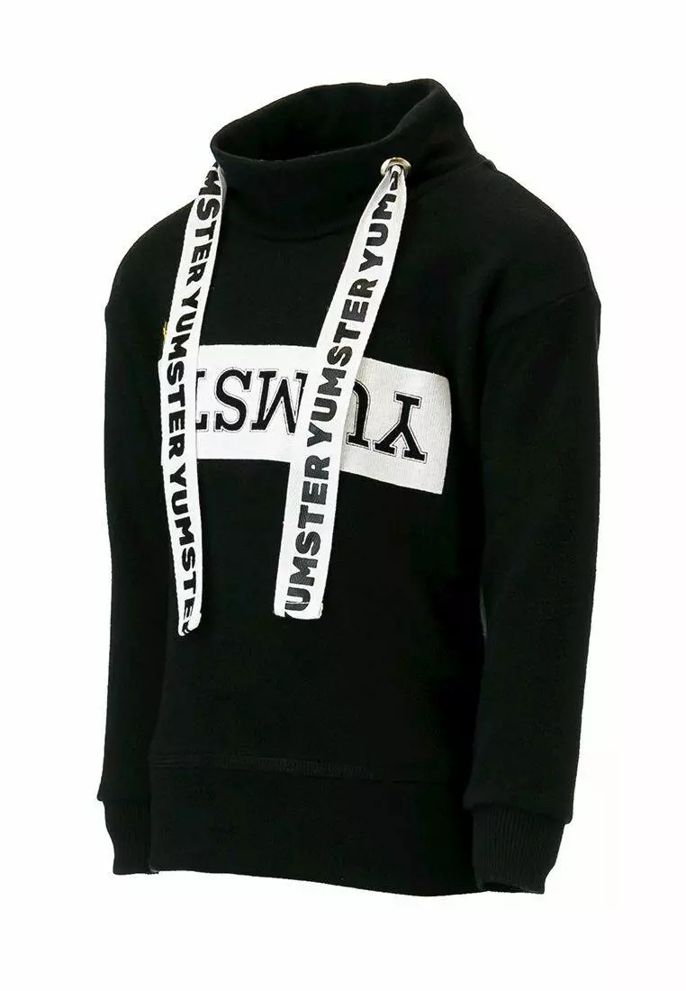 Деталі: Світшот чорного кольору. Манжети з резинкою на рукавах і подолі. Біла тасьма з принтом "Yumster". Тканина - тринитка