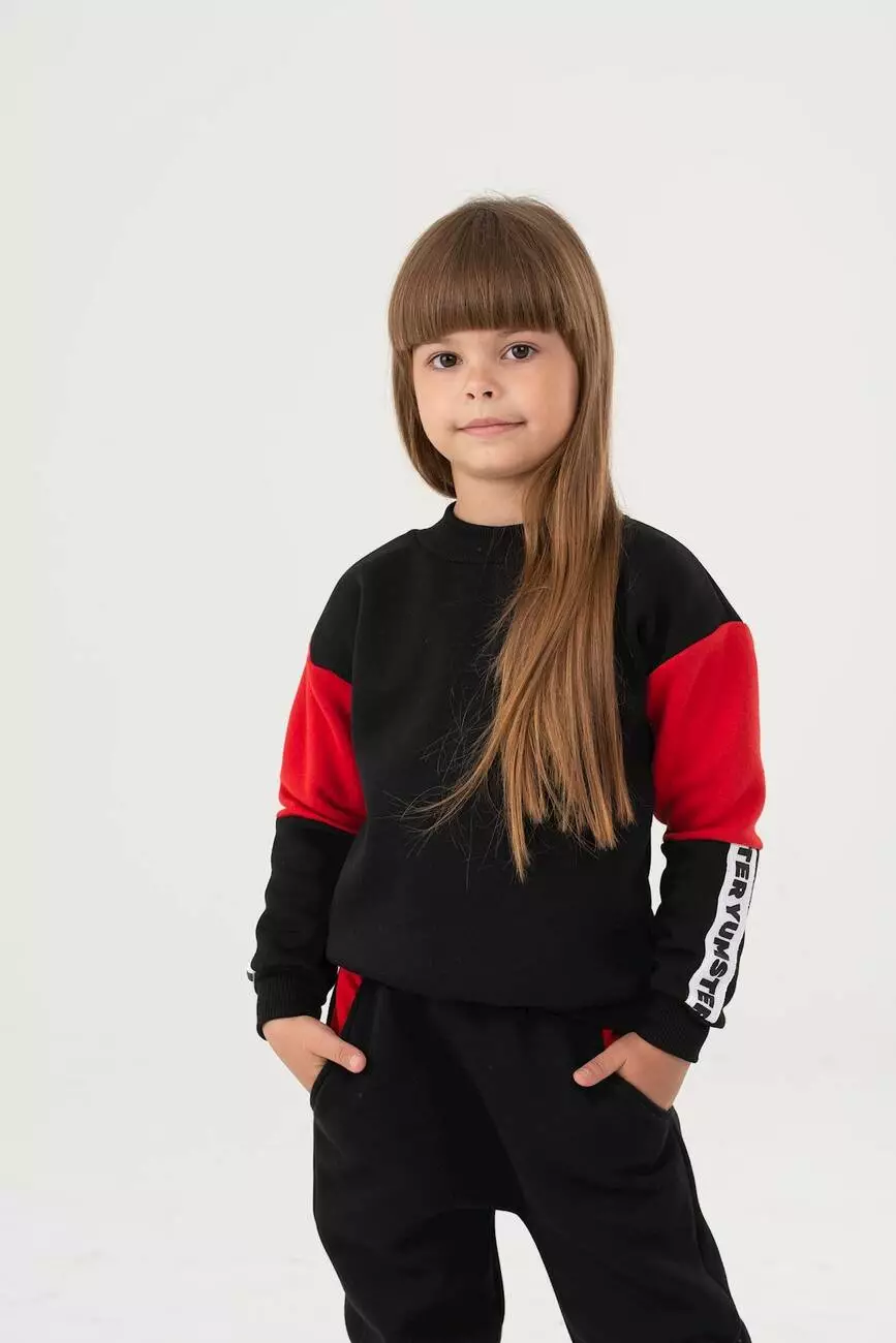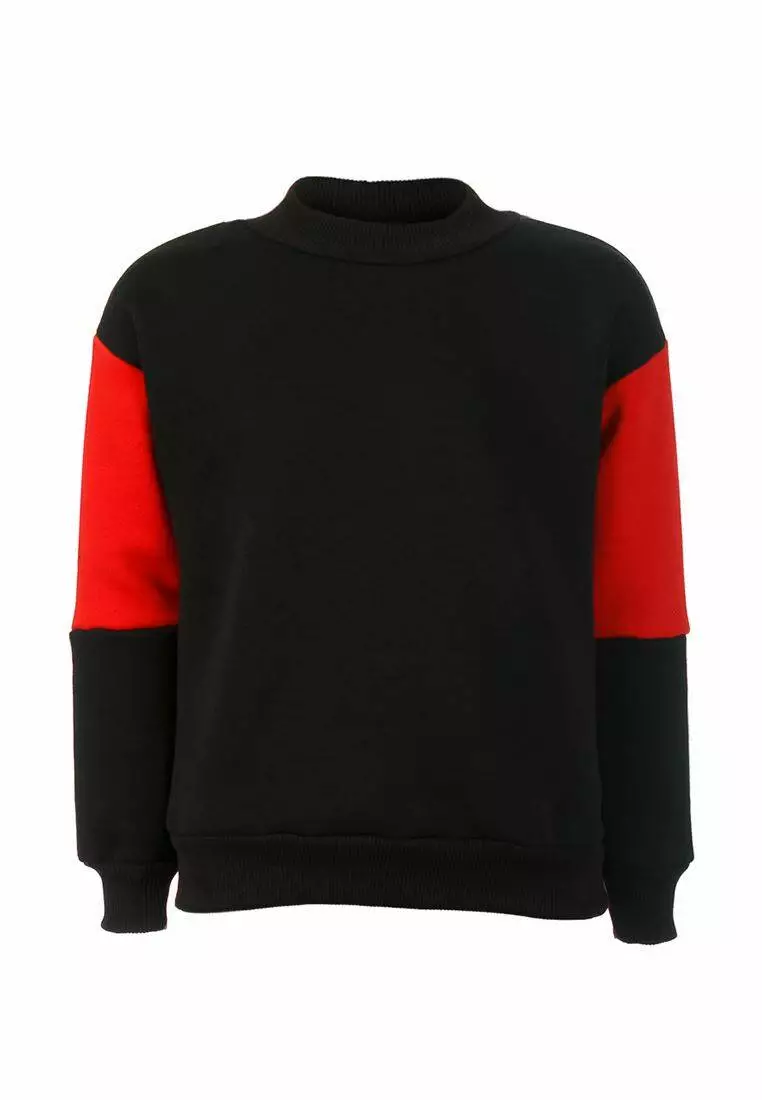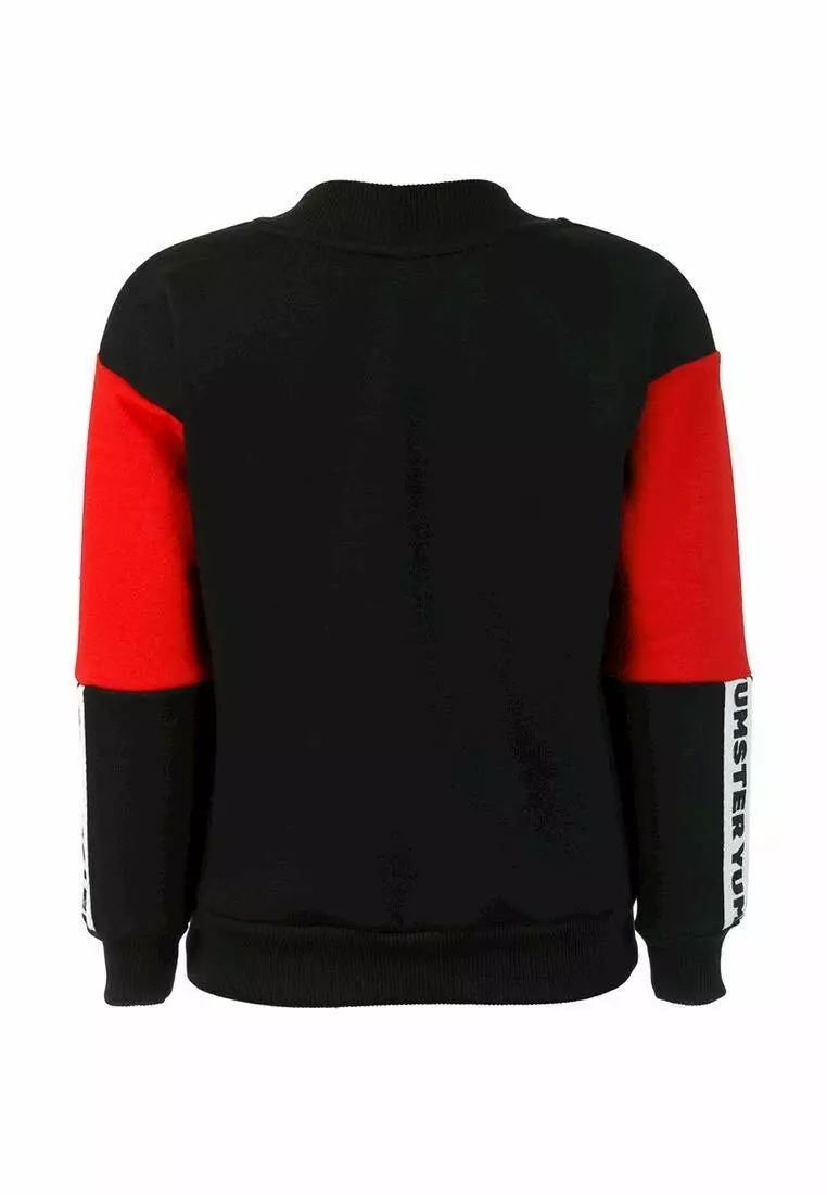 Світшот чорно-червоний з тасьмою на рукаві на флісі YC.02.09.006