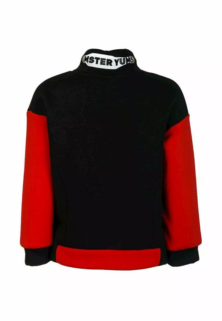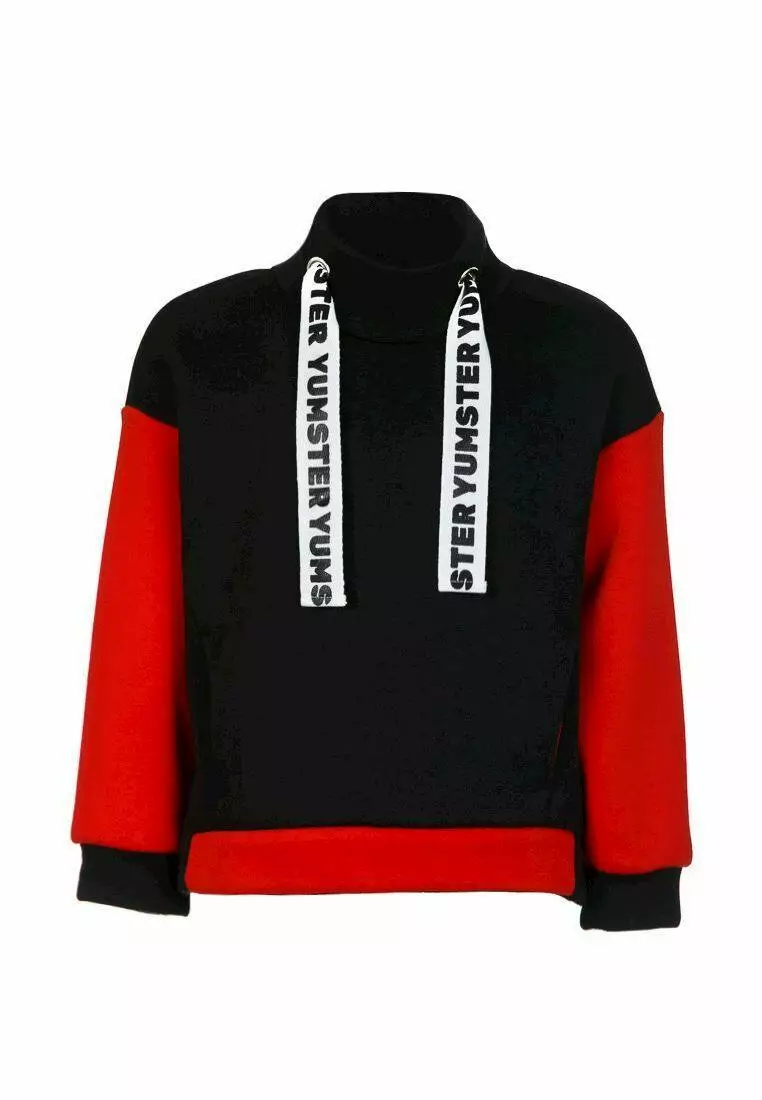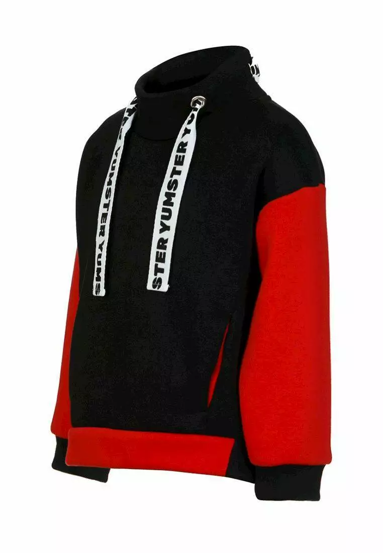 Деталі: Світшот чорно-червоного кольору, на флісі. Манжети з резинкою на рукавах і подолі. Тасьма білого кольору з принтом "Yumster".