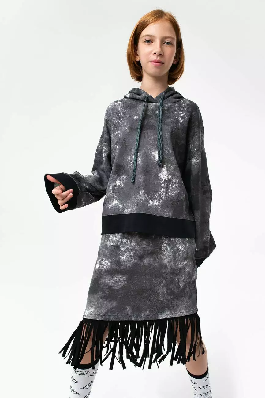 Стильна толстовка вільного крою з заниженою лінією плечей. Для дівчаток від 5 до 15 років.