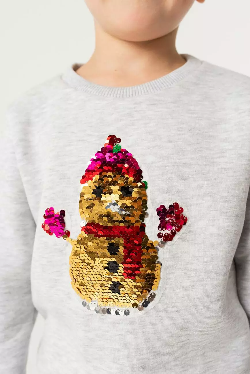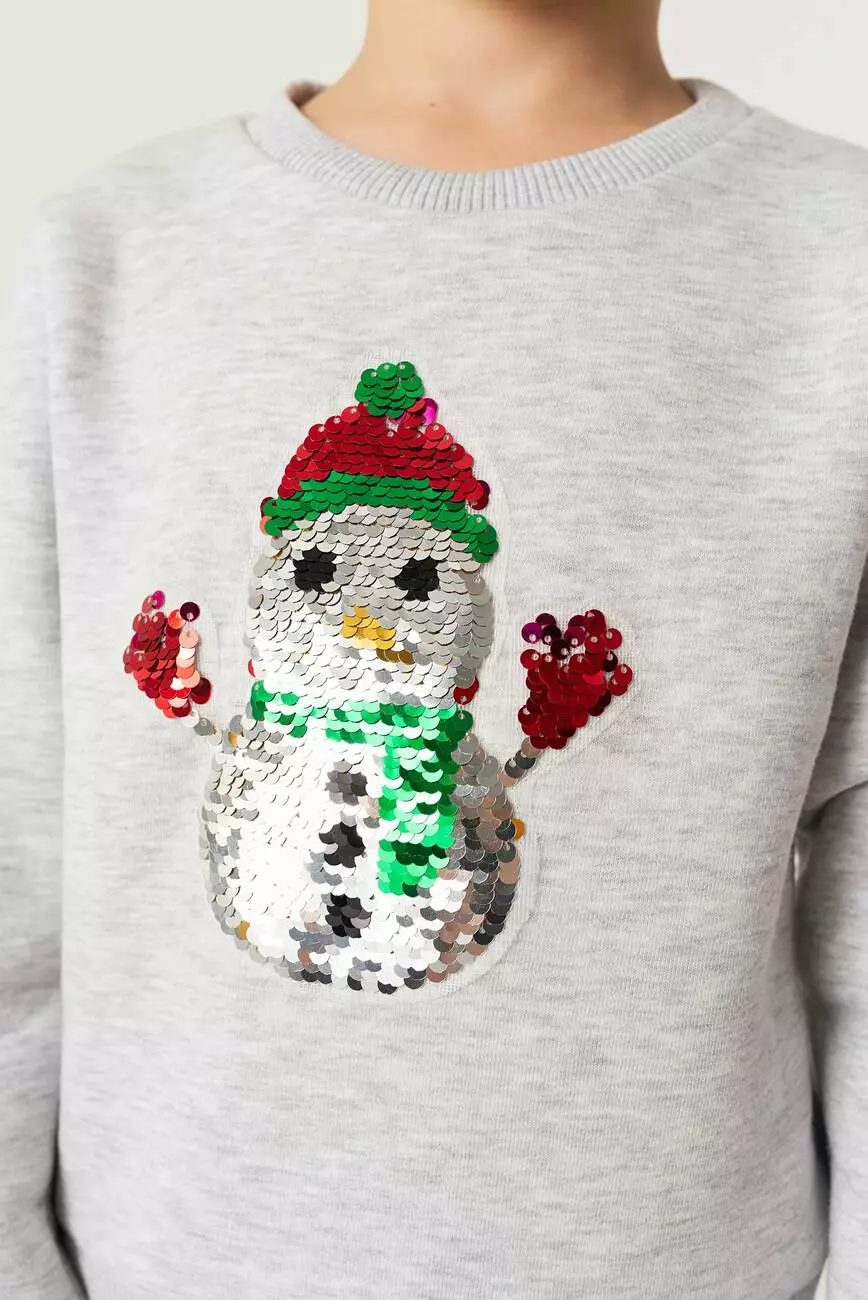 Світшот світло-сірий з аплікацією із паєток Сніговик YI.02.09.006