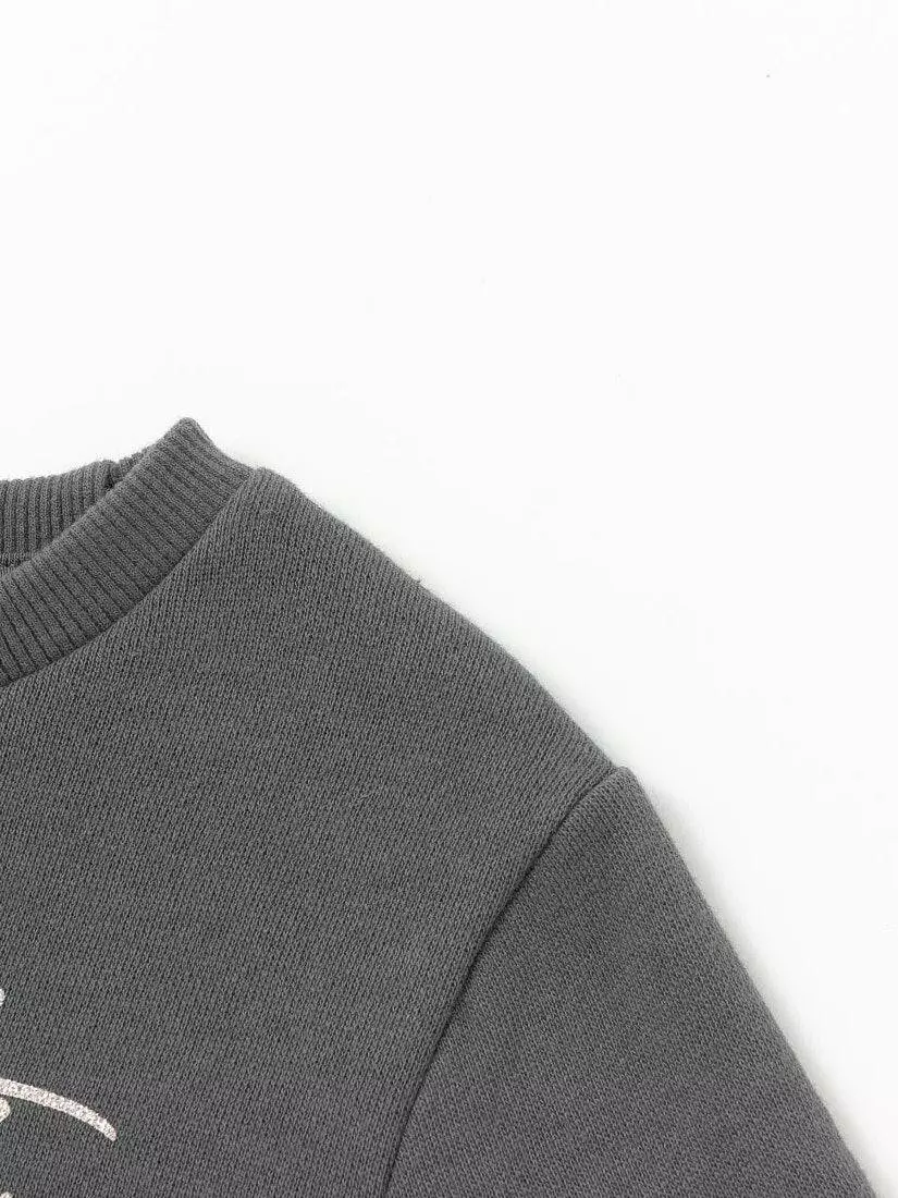 Зустрічайте нову колекцію - колаборація брендів YUMSTER і NEWNESS! Теплий світшот для дівчинки з лаконічним написом – принтом на грудях. Деталі моделі: світшот сірого кольору. Кругла горловина. Довгий рукав. На грудях принт у вигляді напису. Горловина, манжети на рукавах та низ світшота обрамлені еластичною резинкою. Світшот із начосом. Розмірний ряд: на зріст від 98 см до 140 смСклад: 80% бавовна, 20% поліестер