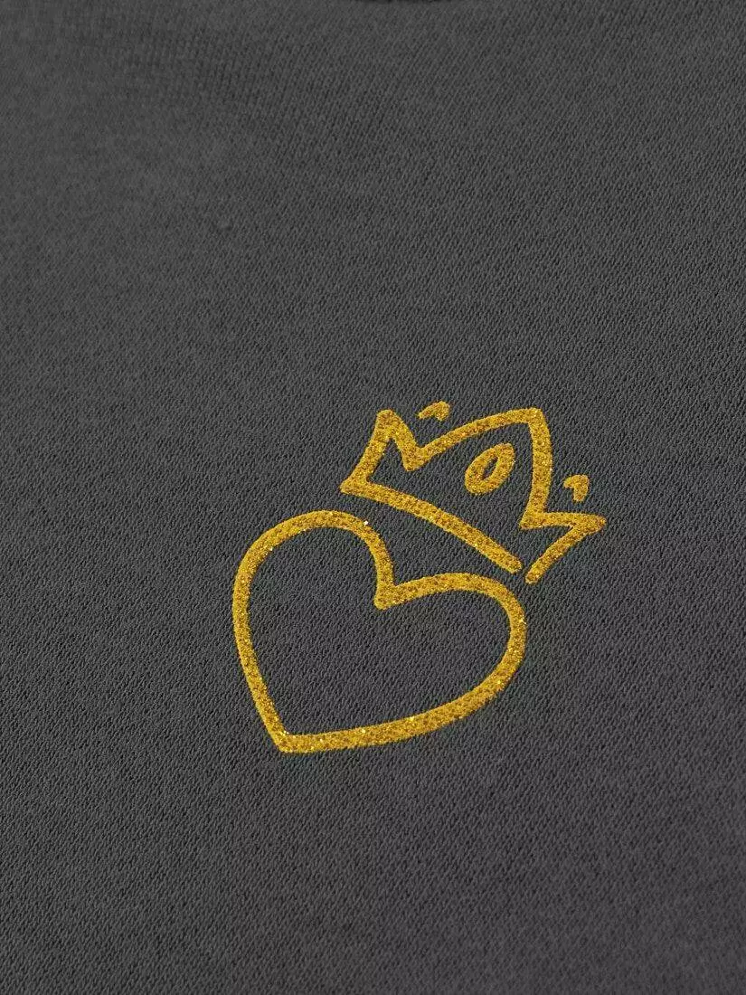 Зустрічайте нову колекцію - колаборація брендів YUMSTER і NEWNESS! Тепло, затишок, функціональність та модний дизайн - все це робить цей світшот ідеальним партнером для динамічної та модно обізнаної дівчинки. Деталі моделі: світшот темно-сірого кольору. Кругла горловина, довгий рукав. Занижена лінія плеча. Вільний крій. На грудях принт - серце та корона. На рукавах вставки із фатина чорного кольору із золотим напиленням. Горловина, манжети рукавів та низ світшота обрамлені м'якою та еластичною резинкою. Розмірний ряд: на зріст від 98 см до 140 смСклад: 80% бавовна, 20 поліестер